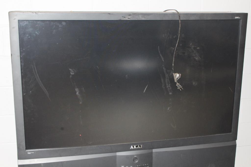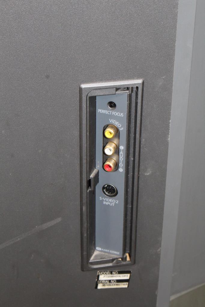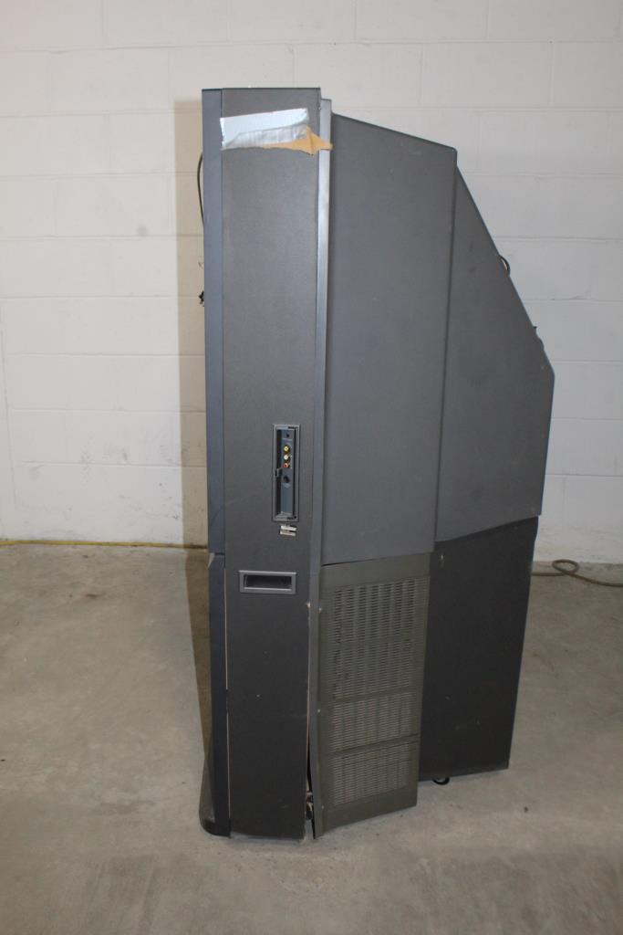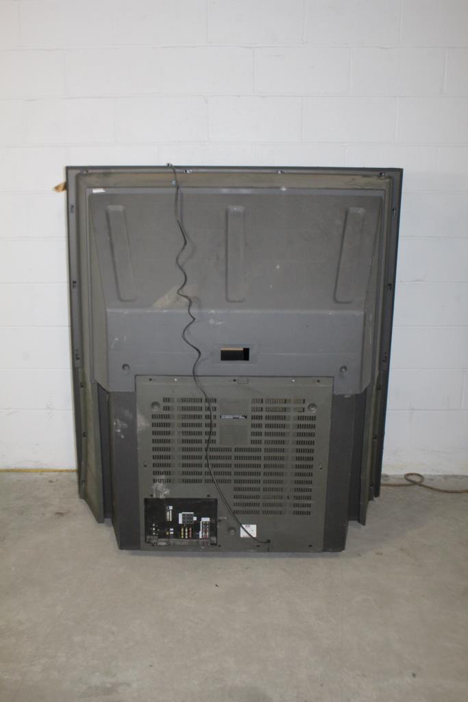 Get a great deal with this online auction for a TV presented by Property Room on behalf of law enforcement or public agency client. Model: PT5598HDI Screen Size: 55" Date of Manufacture: 04/2004 Measurements: 51.5" X 57" X 24" Base: built-in Remote Control: no Power Cord: yes, power cord has some damage Cosmetic Condition: fair, scratches, scuffs, scrapes and wear, cmall panel in back is missing, color is dark and has a green hue Testing Results: Item was tested for power only and it powered on, displayed menu. Input and output ports were not tested and may be non-functional. Item is sold "As Is".