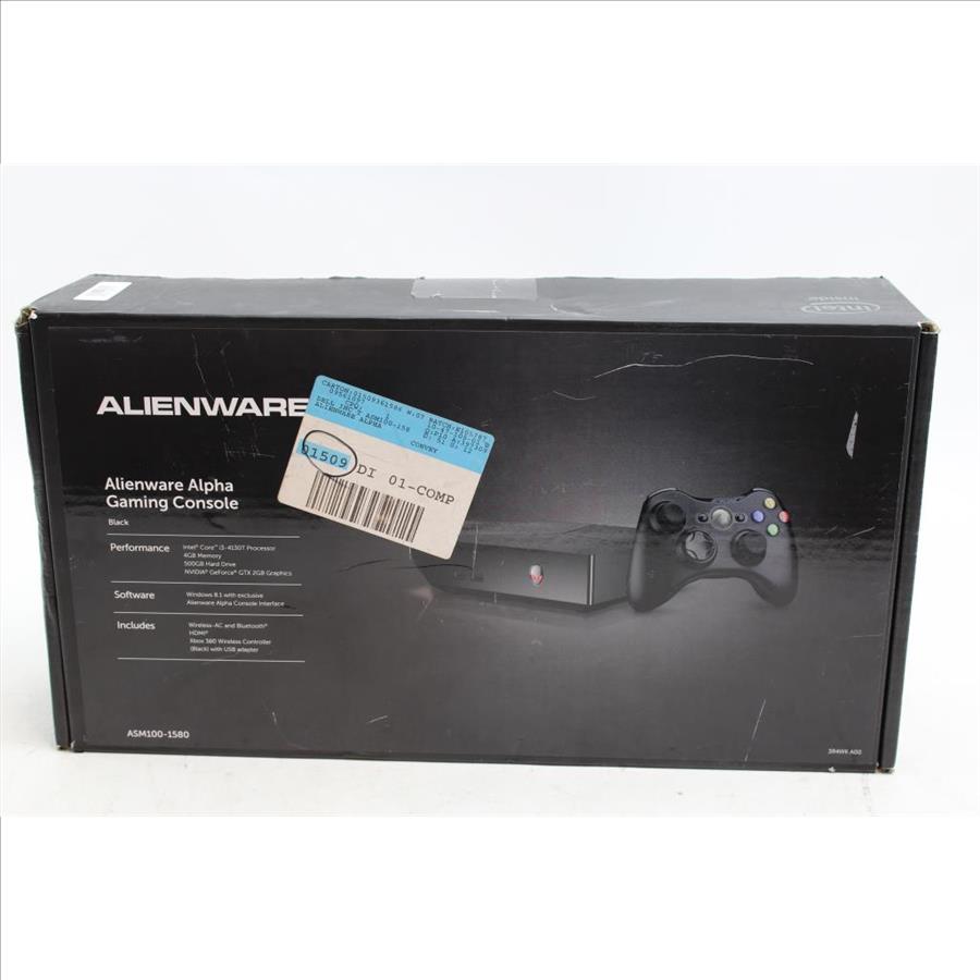 Get a great deal with this online auction for a game console by Property Room on behalf of law enforcement or public agency client. Brand: Alienware Model: ASM100-1580 HDD: 500GB RAM: 4GB OS Version: Windows 8.1 with Exclusive Alienware Alpha Console Interface Processor: Intel Core i3 4130T CPU @ 2.90 GHz Controllers: One Microsoft Xbox 360 Wireless Controller Included Video Out Cable: HDMI Cable Included Power Cord/Adapter: Included Accessories: USB Microsoft Xbox 360 Wireless Receiver for Windows; Original Box and Paperwork Included Cosmetic Condition: Appears New in Open Box Testing Results: Tested, Powered On, and Responded to Controls; Windows Set to Factory Settings Condition: New This item was received in an opened box. Some parts may be missing.
