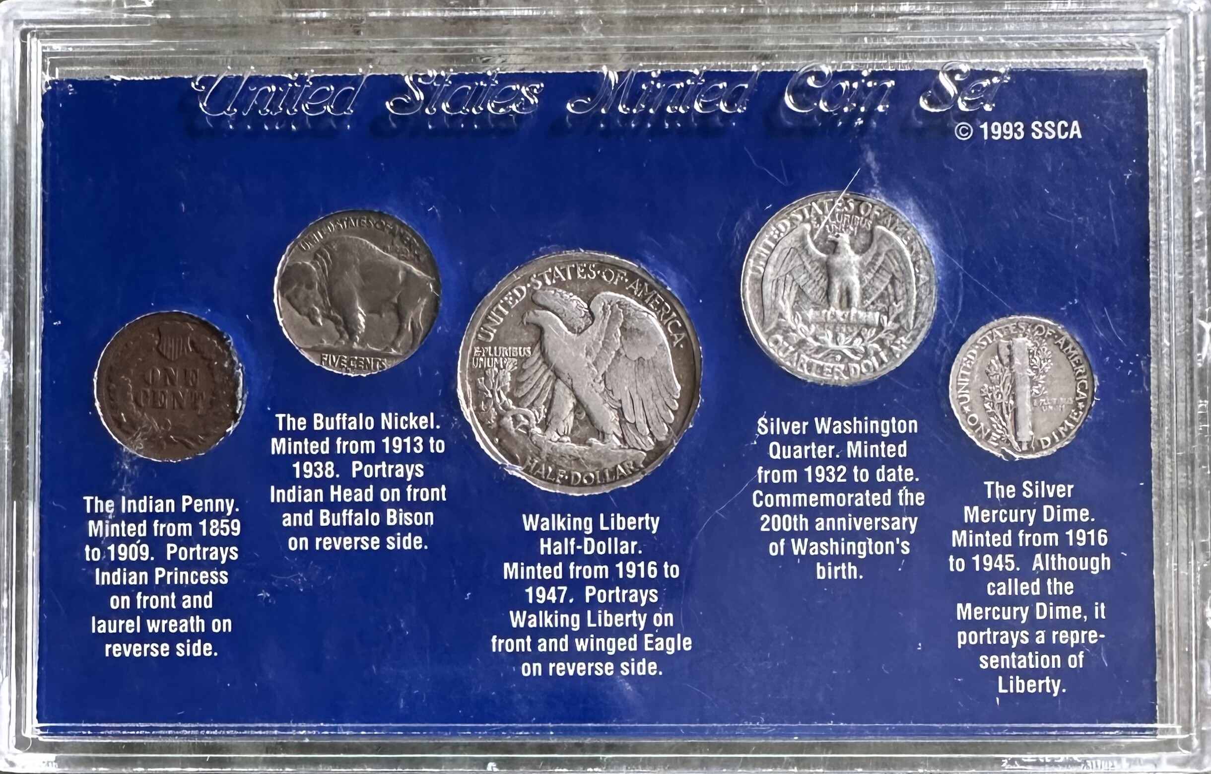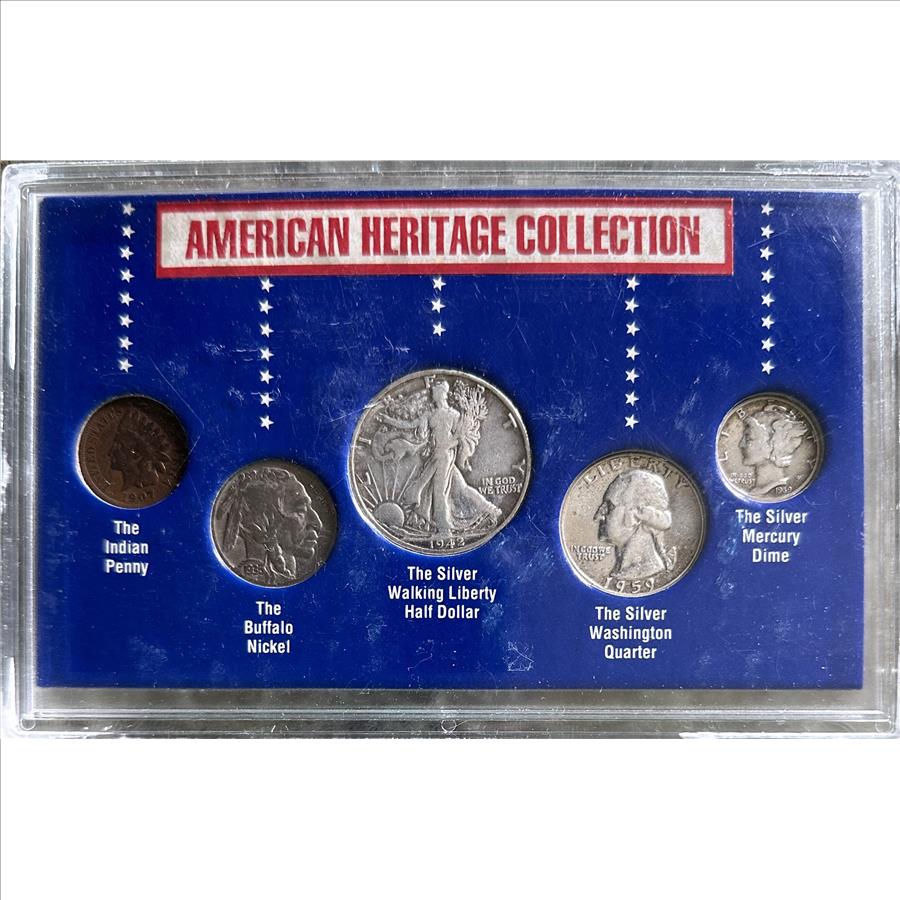 American Heritage Collection U.S. Minted Coin Set - 5 Coins Total, 3 Silver Including 1942-D Walking Liberty Airtight Encased!
