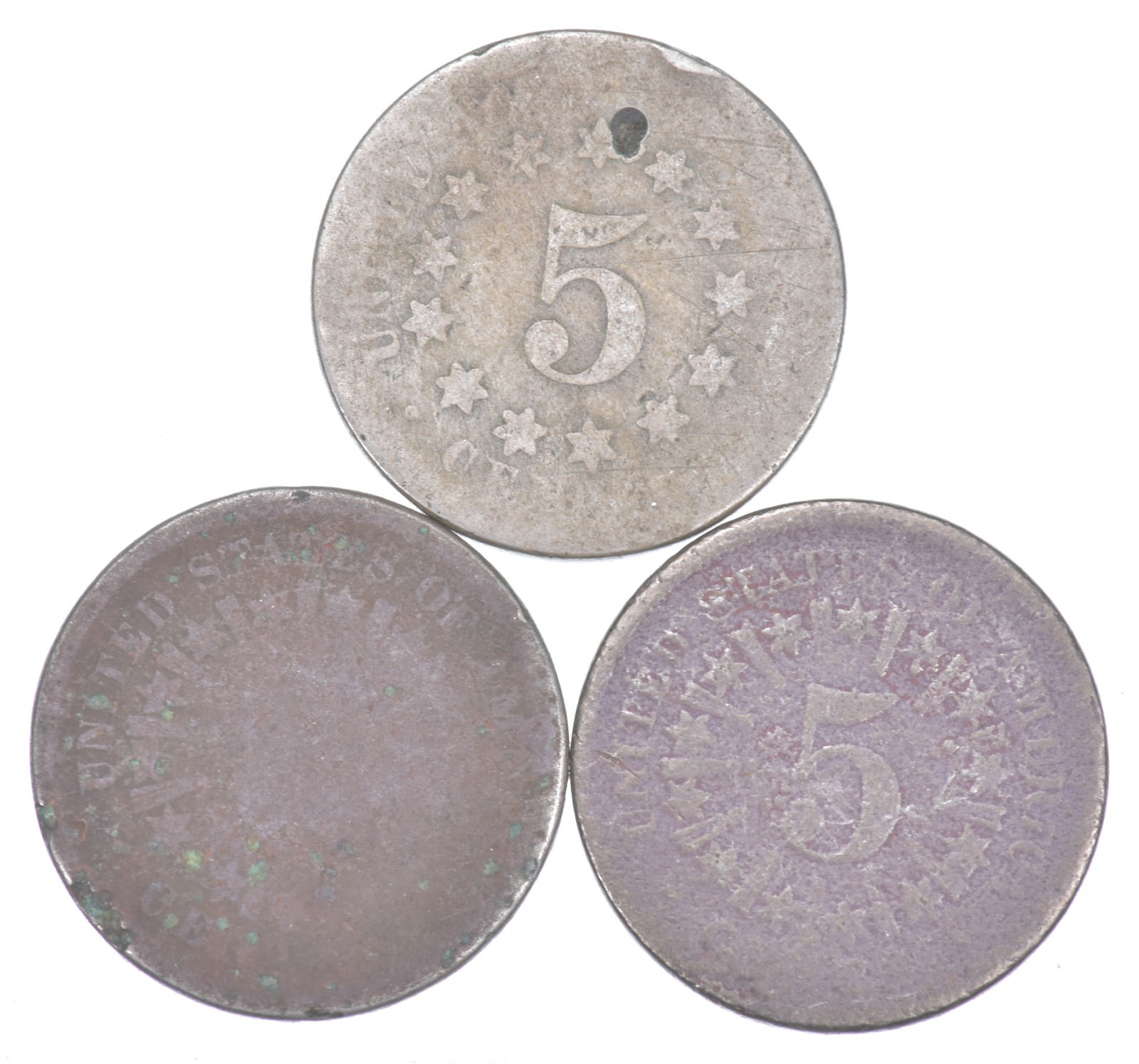 America's First Nickel! (3) 1866-1883 Shield Nickel US Coin Collection Lot