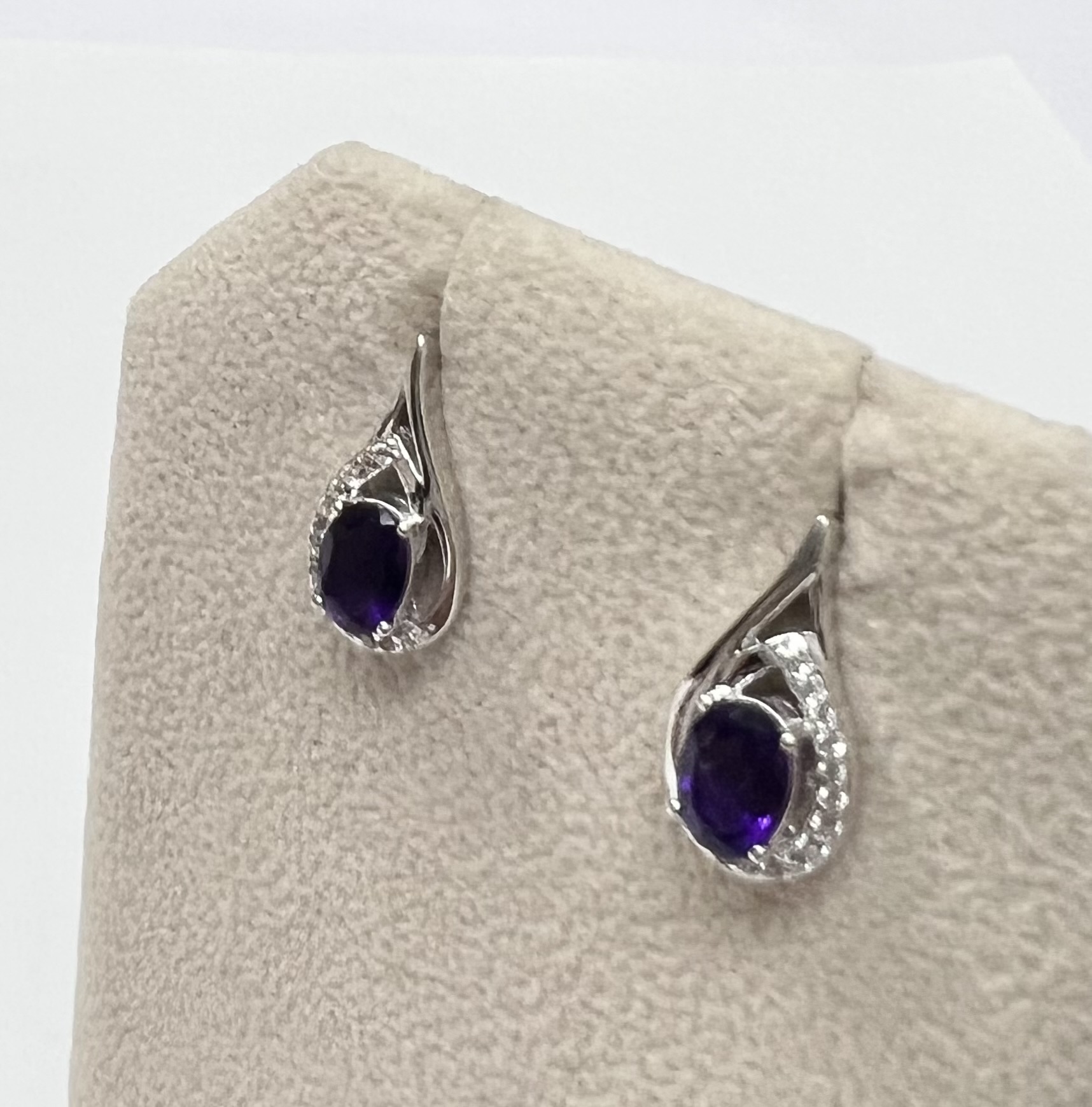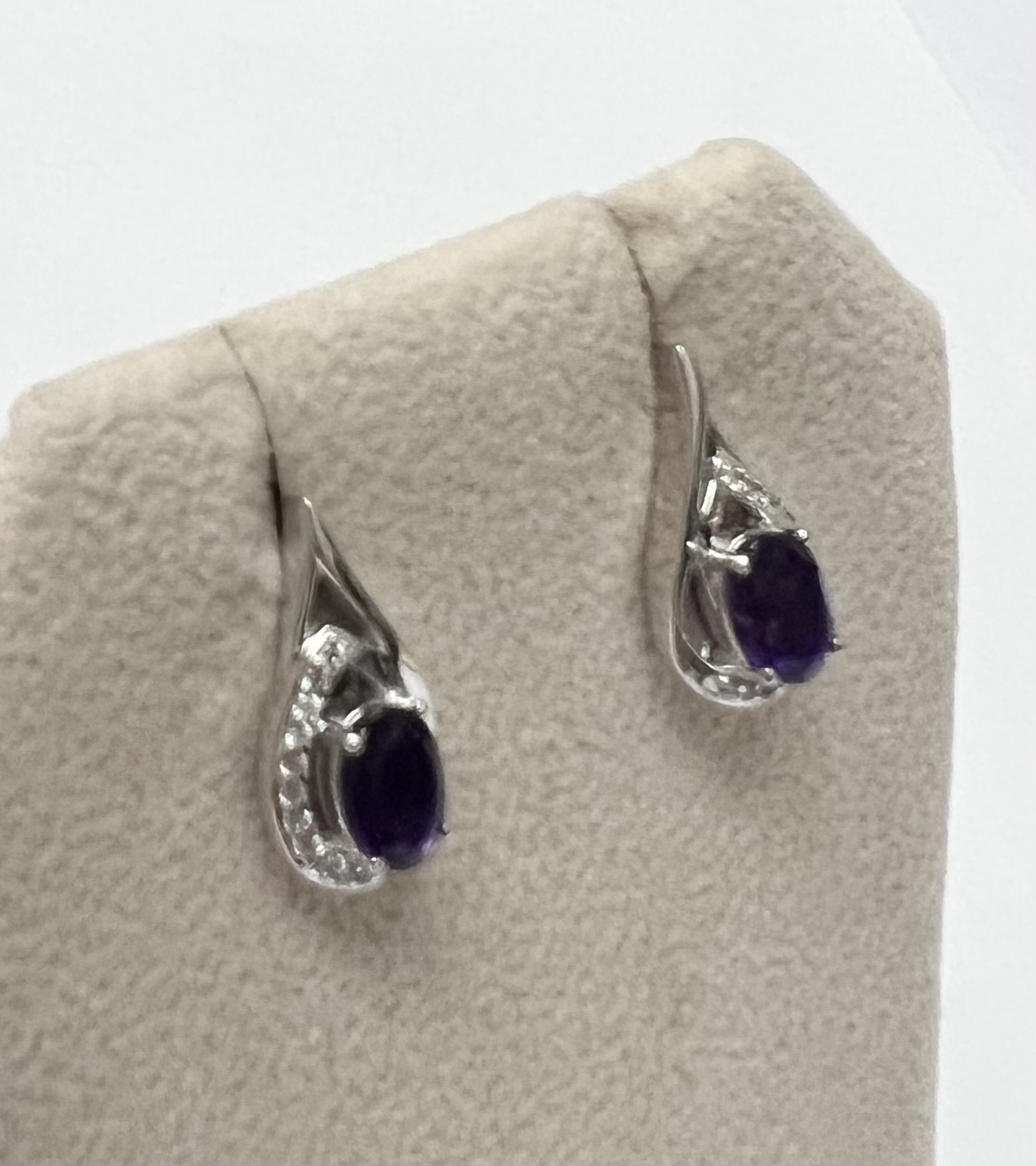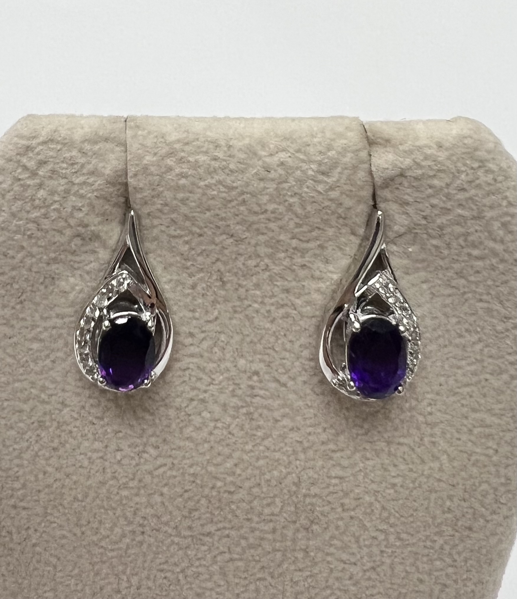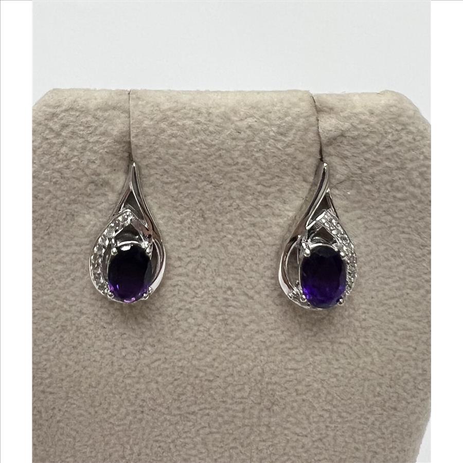 BEAUTIFUL AMETHYST AND WHITE ZIRCON EARRINGS SET IN STERLING SILVER