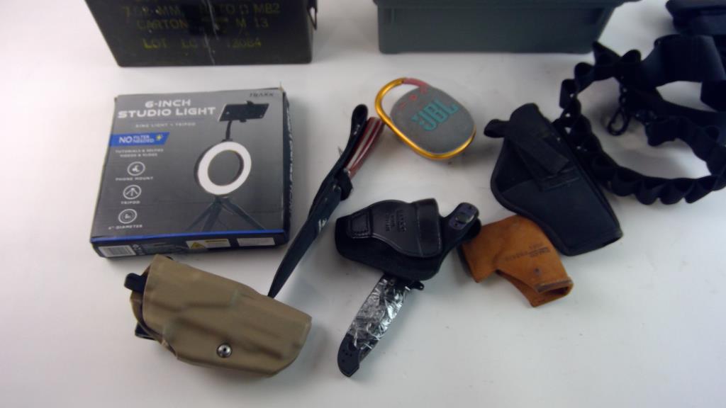 Get a great deal with this online auction presented by PropertyRoom.com on behalf of a law enforcement or public agency client. - Plano Tackle Box, Ammo Can, Traxx Studio Light, More