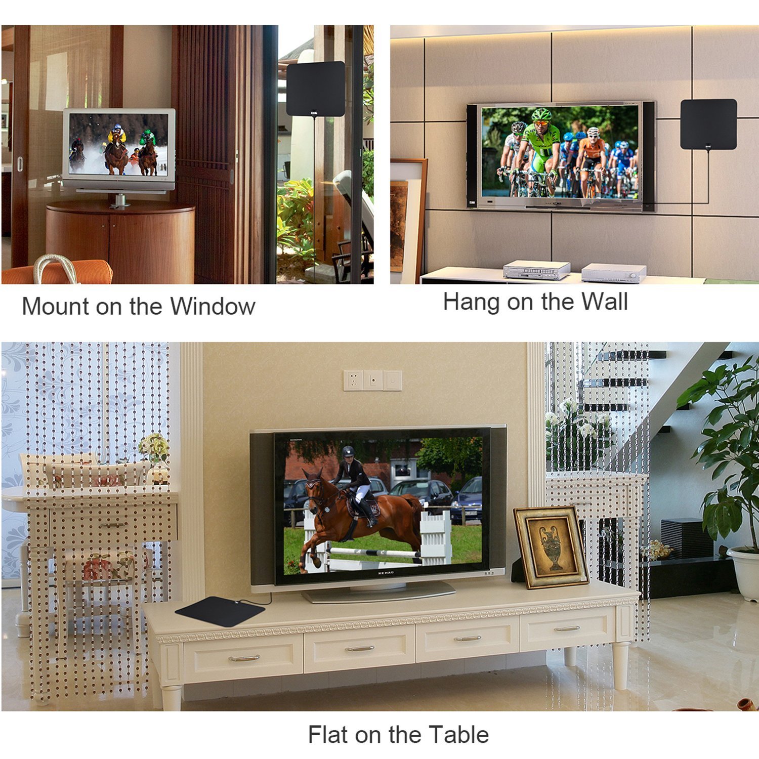 • SLIM , HIGH PERFORMANCE - Our HDTV Antenna can easily be hidden behind the TV or bookshelf, lay flat on table, stick it high on window(stand moisture weather or exposed to sunshine) or lain flat on a table, and will still pull in hundreds of crystal clear digital & HD shows!