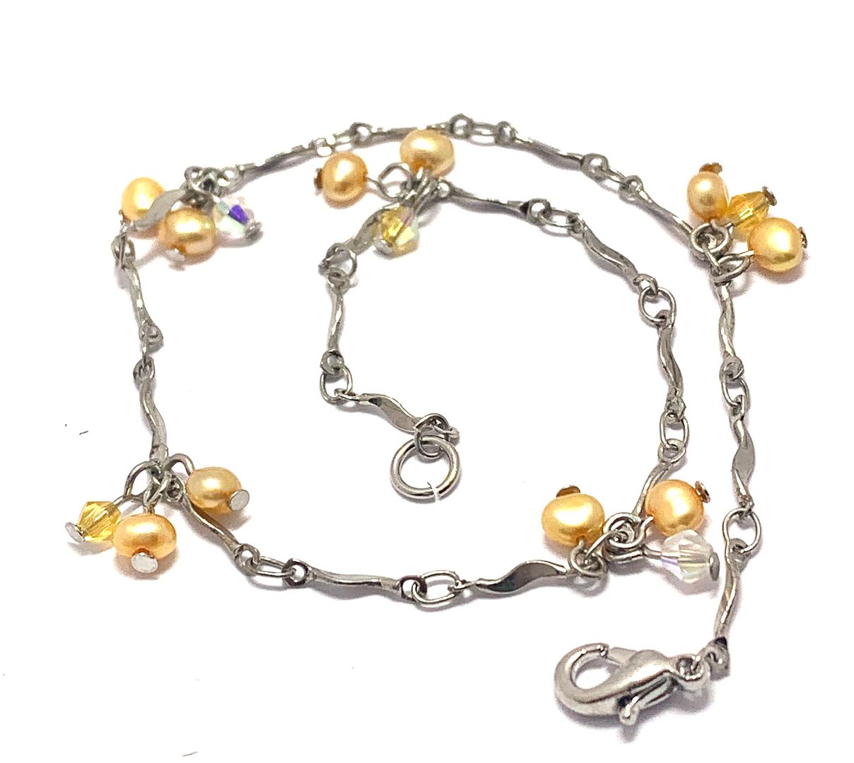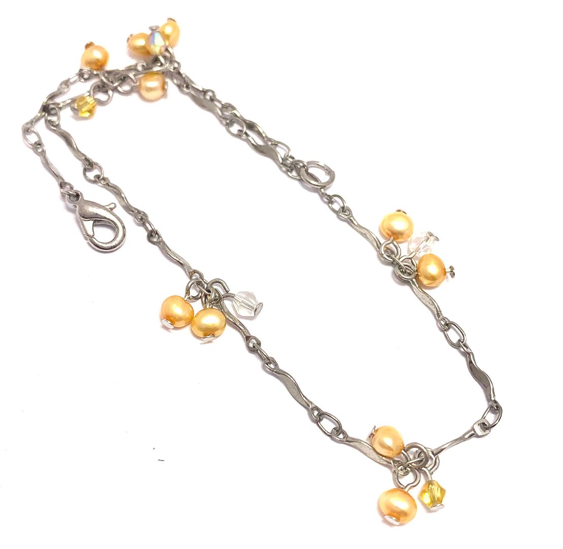 Anklet Bracelet 3mm Cream FreshWater Pearls & Mystic Topaz .925 Sterling Silver 9.75” Long