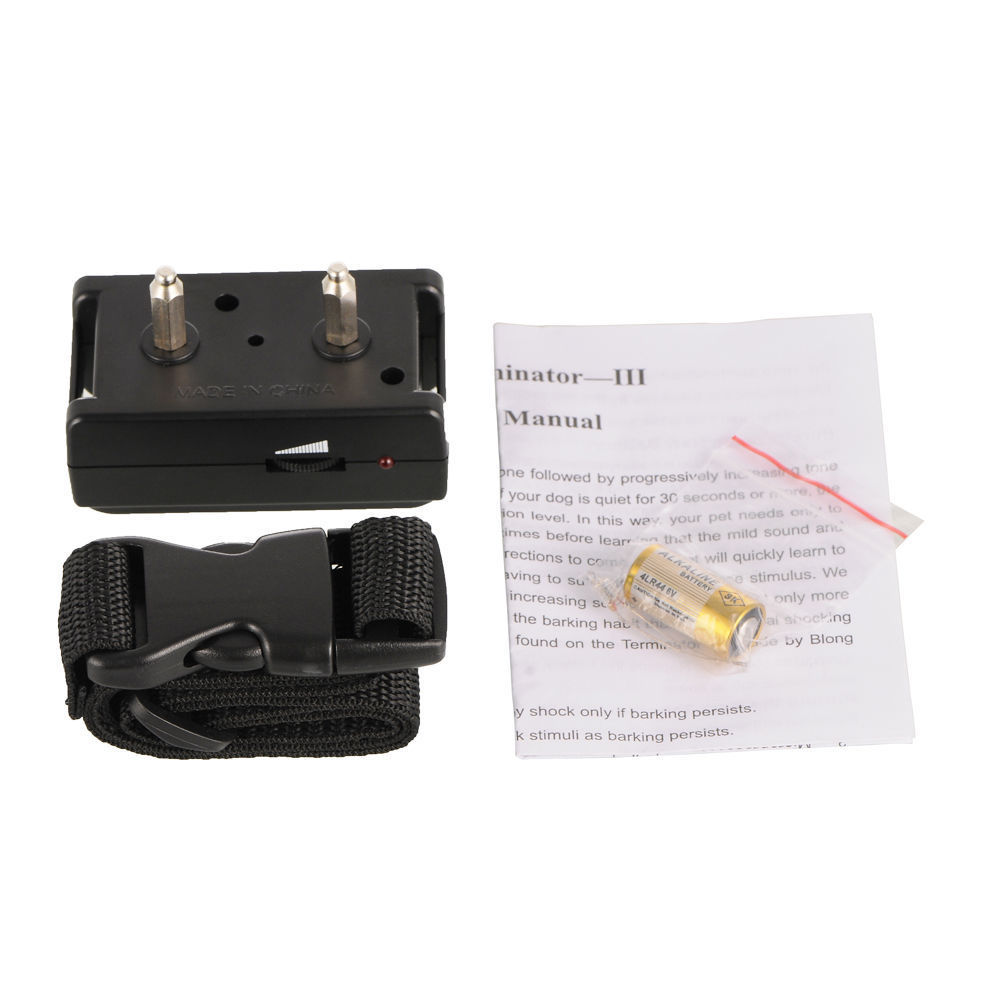 The bark control collar first applies a warning tone followed by progressively increasing tone and shock as your dog's barking persist. If your dog is quiet for 30 seconds or more, the bark control collar resets to the mildest correction level. If a second bark occurs within thirty seconds, a more intense tone is sounded along with a short, mild shock. If your dog barks a third time, both the tone and shock are made more intense. This pattern is repeated through five correction levels. If your dog continues to bark through all five levels, the most intense sound and shock are applied after each bark until your pet stops for thirty seconds. In this way, your pet needs only to experience the higher shock levels a few times before learning that the mild sound and shock stimulus is a warning of stronger corrections to come. Your pet will quickly learn to SHUT UP at the mild correction without having to suffer the more intense stimulus. We have found this technique of progressively increasing sound and shock is not only more humane, it is more EFFECTIVE in breaking the barking habit than conventional shocking bark control collars.