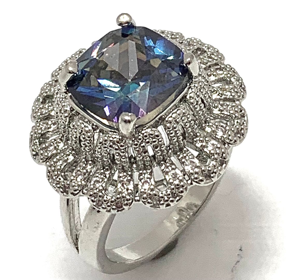 Antique Design 9.00ctw Mistique Topaz & Diamonique Diamond Ring