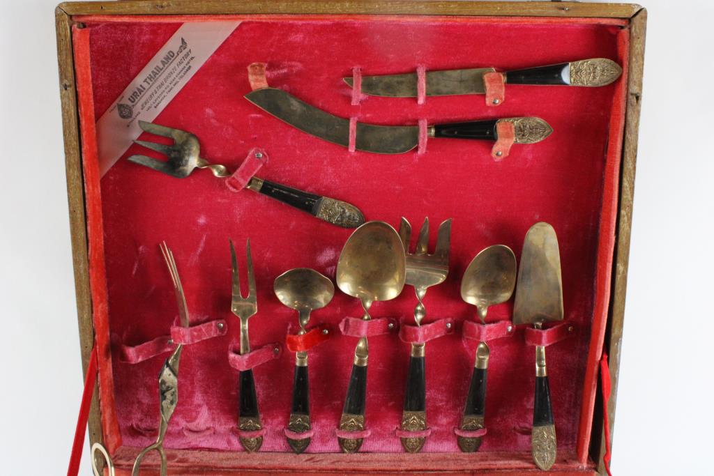 Antique Urai Thailand 40+ Bronze Siamese Art Dining Set