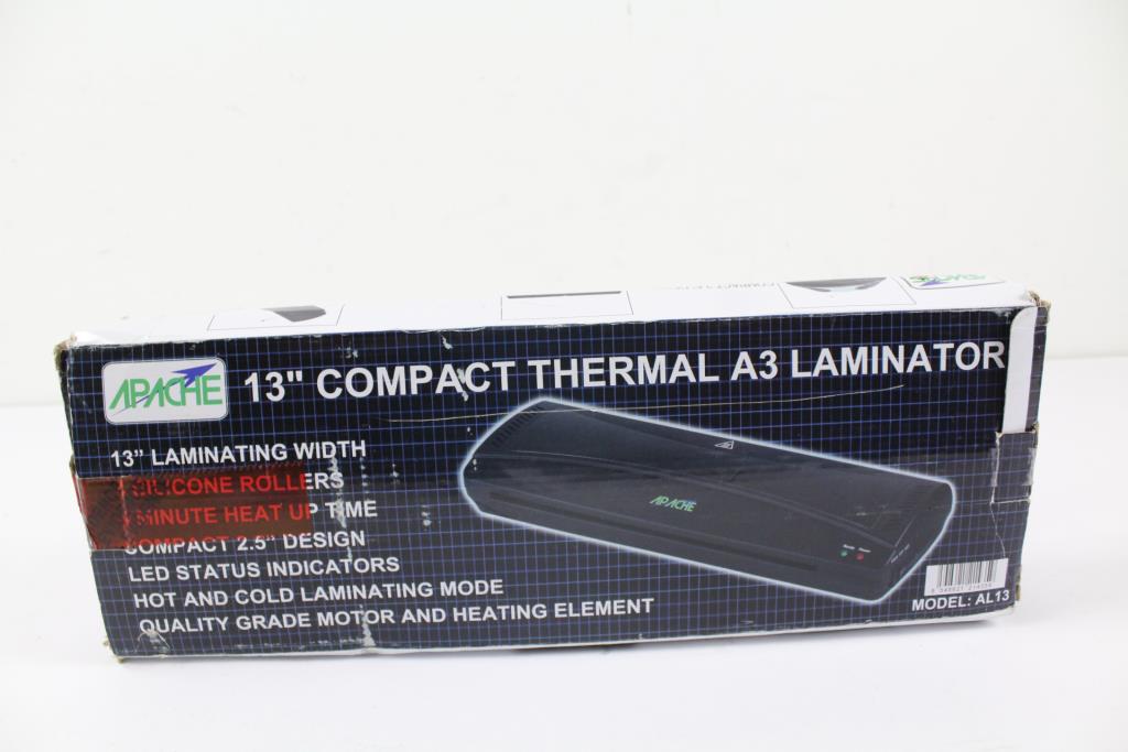 Get a great deal with this online auction for a Apache AL13 laminator presented by Property Room on behalf of a law enforcement or public agency client. - Brand: Apache