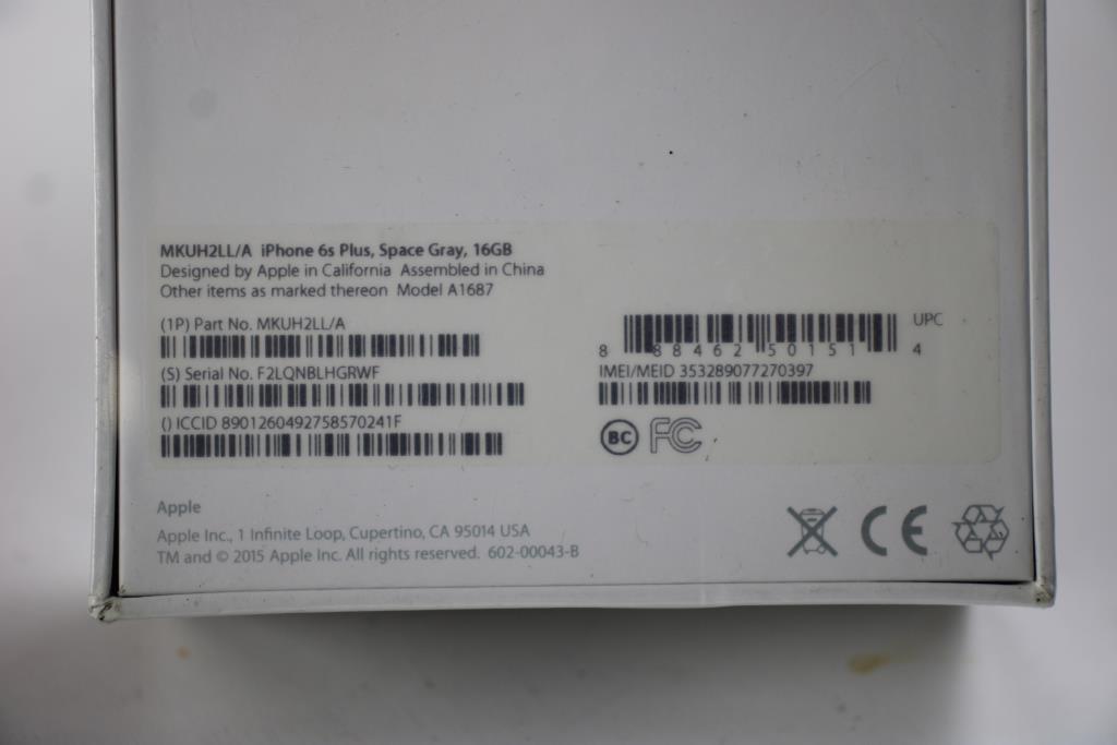 Get a great deal with this online auction presented by PropertyRoom.com on behalf of a law enforcement or public agency client. Model: A1687 IMEI/MEID/ESN/HEX: 353289077270397 Unable to test SIM card functionality Activation Lock: Unknown Carrier Lock: Unknown Physical Condition: New in Sealed box Testing Results: Item has not been tested