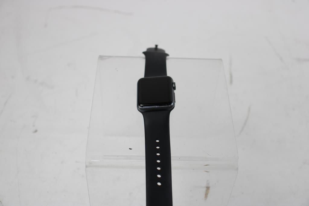 - Watch Size: 38mm Aluminum Case, Black Sports Band (Size S/M)