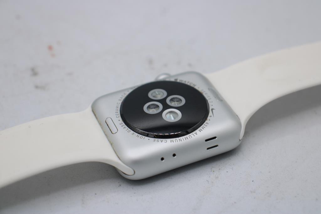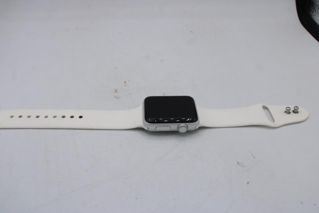 - Watch Size: 42mm Aluminum Case, White Sports Band (S/M)