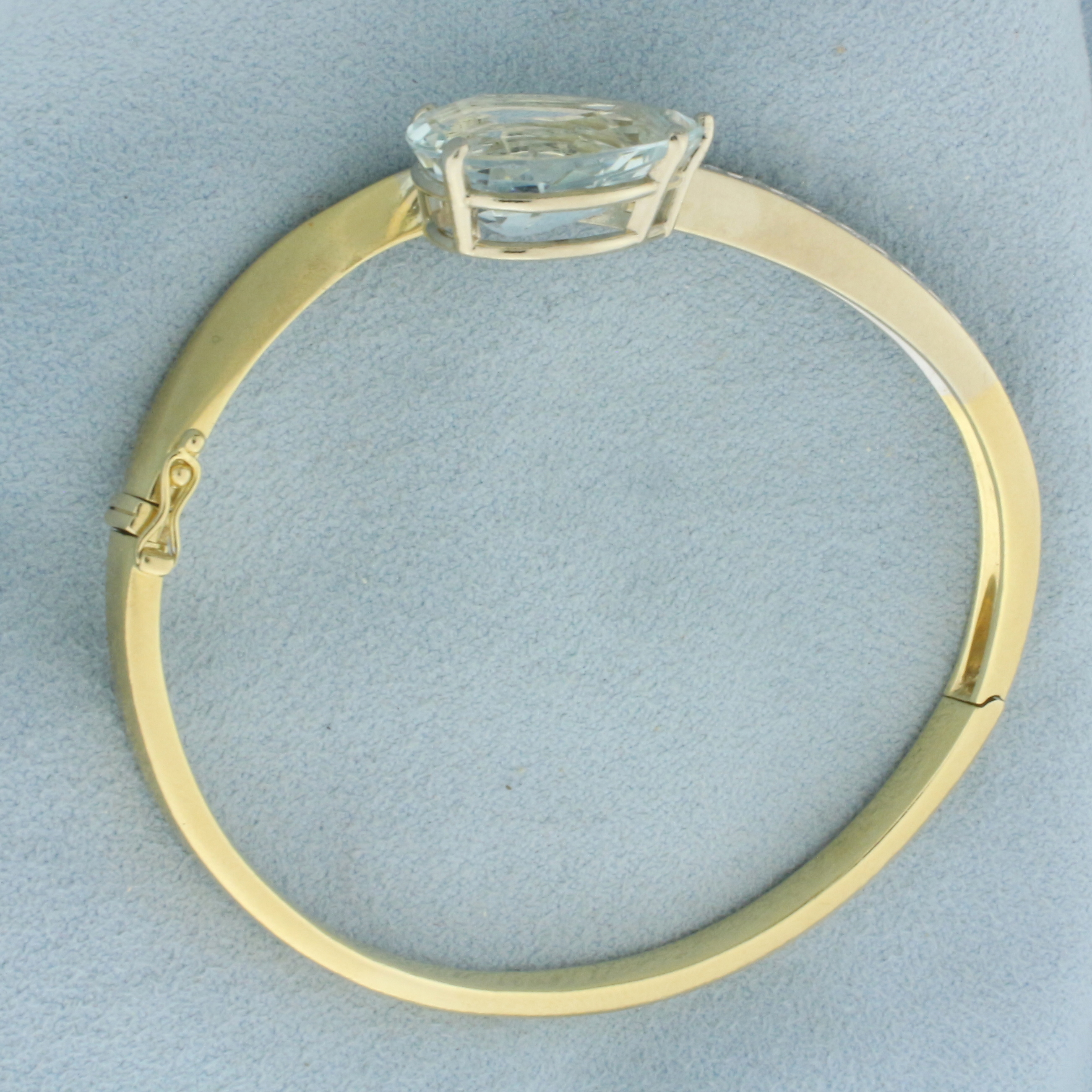 Aquamarine and Diamond Hinged Bangle Bracelet in 18k Yellow Gold