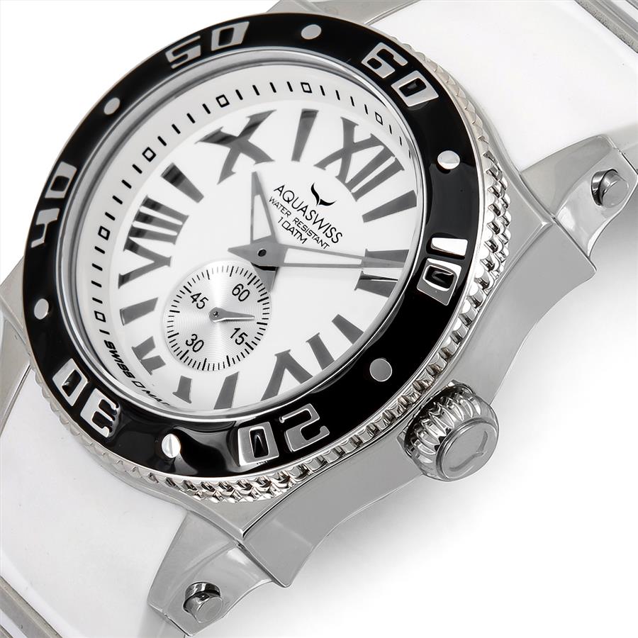 Get a great deal with this online auction for AQUASWISS watch presented by Property Room. This fine AQUASWISS watch is part of a special inventory blowout! We assure you that this product was handled with great care and this will not and does not effect the high quality of this product or warranty in anyway. Introducing the AQUASWISS Collection, stunning watches that can be worn for sport, casual, or dress. AQUASWISS watches are brand new and come in its original box with owners manual and 2 year warranty. AQUASWISS watches are truly high quality timepieces. All weights, measurements and colors are approximate and may vary slightly from the listed dimensions or as seen in the image. All pictures are magnified to show the smallest of details. Please, refer to the item description for actual weight and size evaluation.