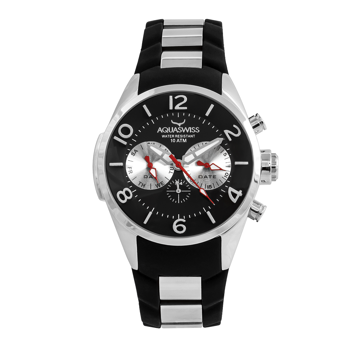 Get a great deal with this online auction for AQUASWISS watch presented by Property Room. This fine AQUASWISS watch is part of a special inventory blowout! We assure you that this product was handled with great care and this will not and does not effect the high quality of this product or warranty in anyway. Introducing the AQUASWISS Collection, stunning watches that can be worn for sport, casual, or dress. All AQUASWISS timepieces are water resistant up to 10 ATM (330 feet). All AQUASWISS watches come with Swiss movements with or without chronograph. AQUASWISS watches are brand new and come in its original box with owners manual and 2 year warranty. AQUASWISS watches are truly high quality timepieces. All weights, measurements and colors are approximate and may vary slightly from the listed dimensions or as seen in the image. All pictures are magnified to show the smallest of details. Please, refer to the item description for actual weight and size evaluation.
