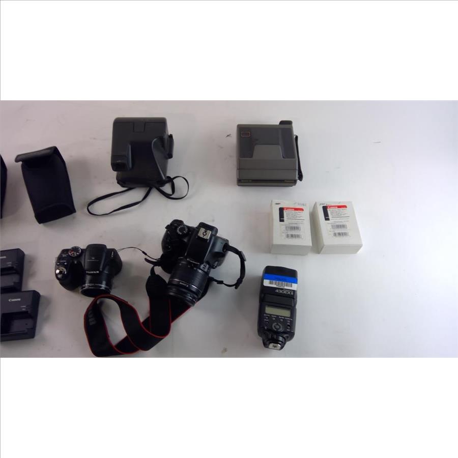 - Polaroid cameras, Canon EOS Rebel T3, Canon Battery Charger, Fujifilm Camera, Canon Off Camera Shoe Cord, More