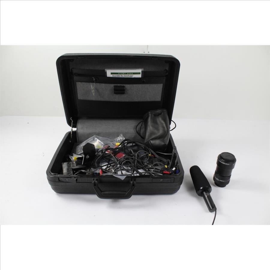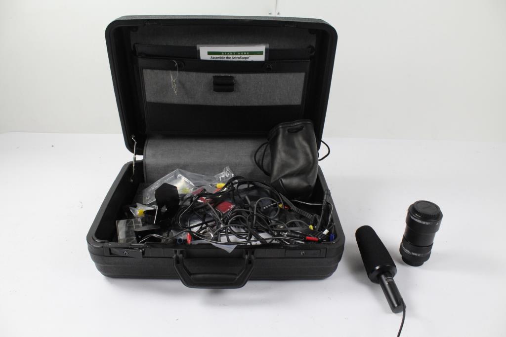 - Accessories: Canon Stereo Microphone, assorted cords and cables, carrying case with broken hinge.