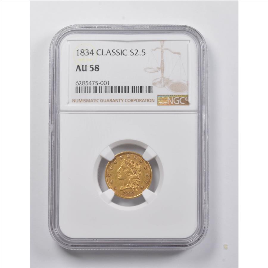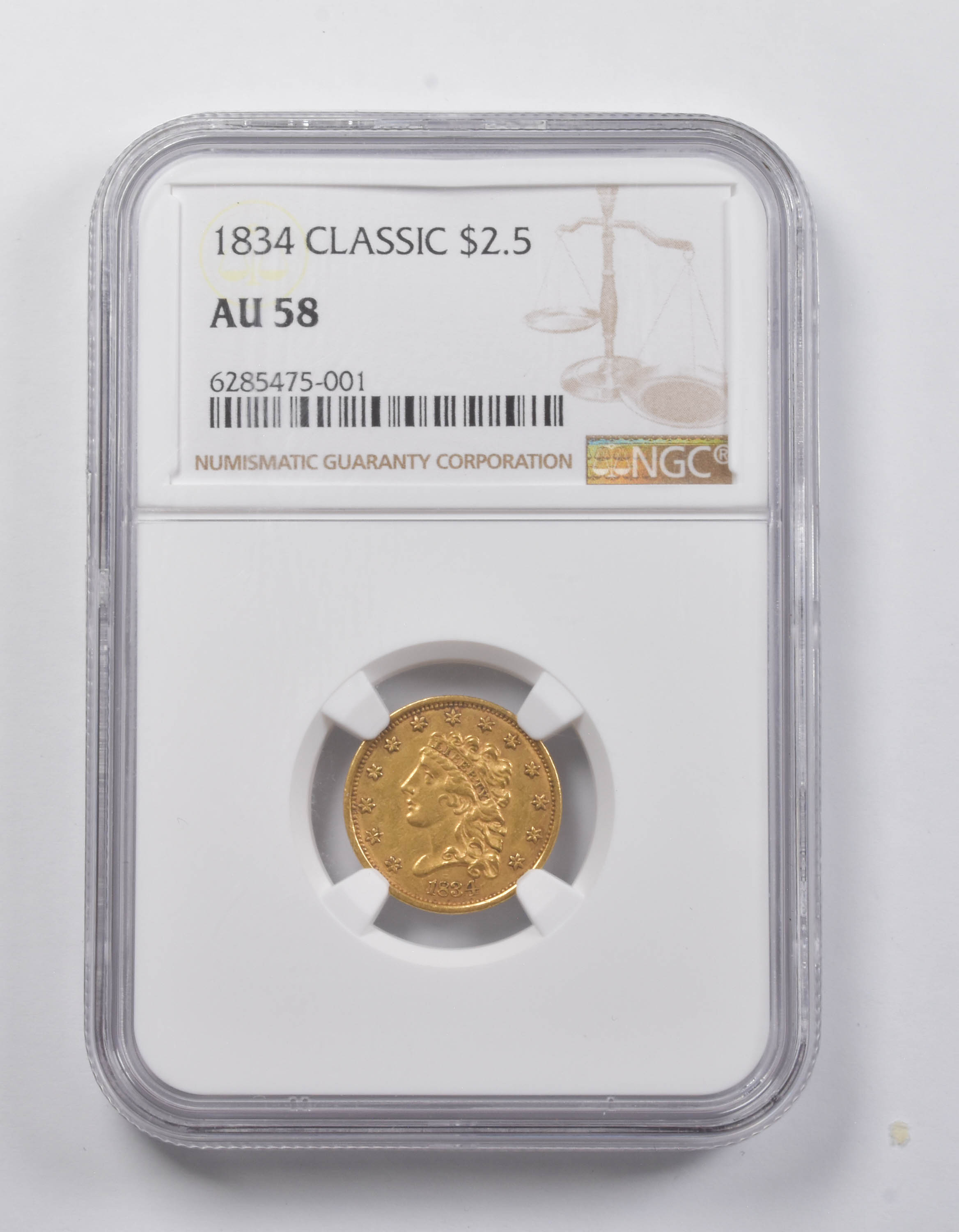 AU58 1834 $2.50 Classic Head Gold Quarter Eagle NGC