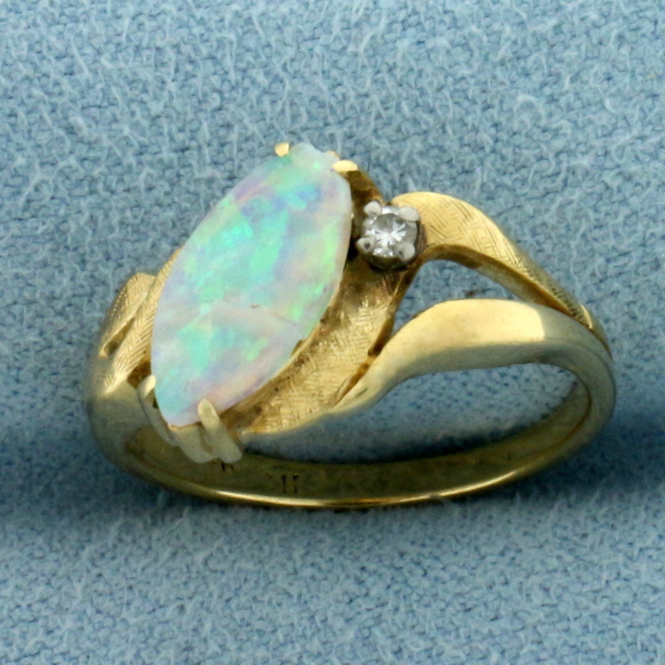 Australian Opal and Diamond Ring in 14k Yellow Gold