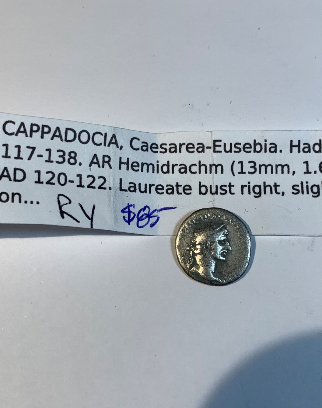 Authentic Ancient Greek Silver Quinarius Cappadocia under Roman Rule Hardrian 117-138 AD