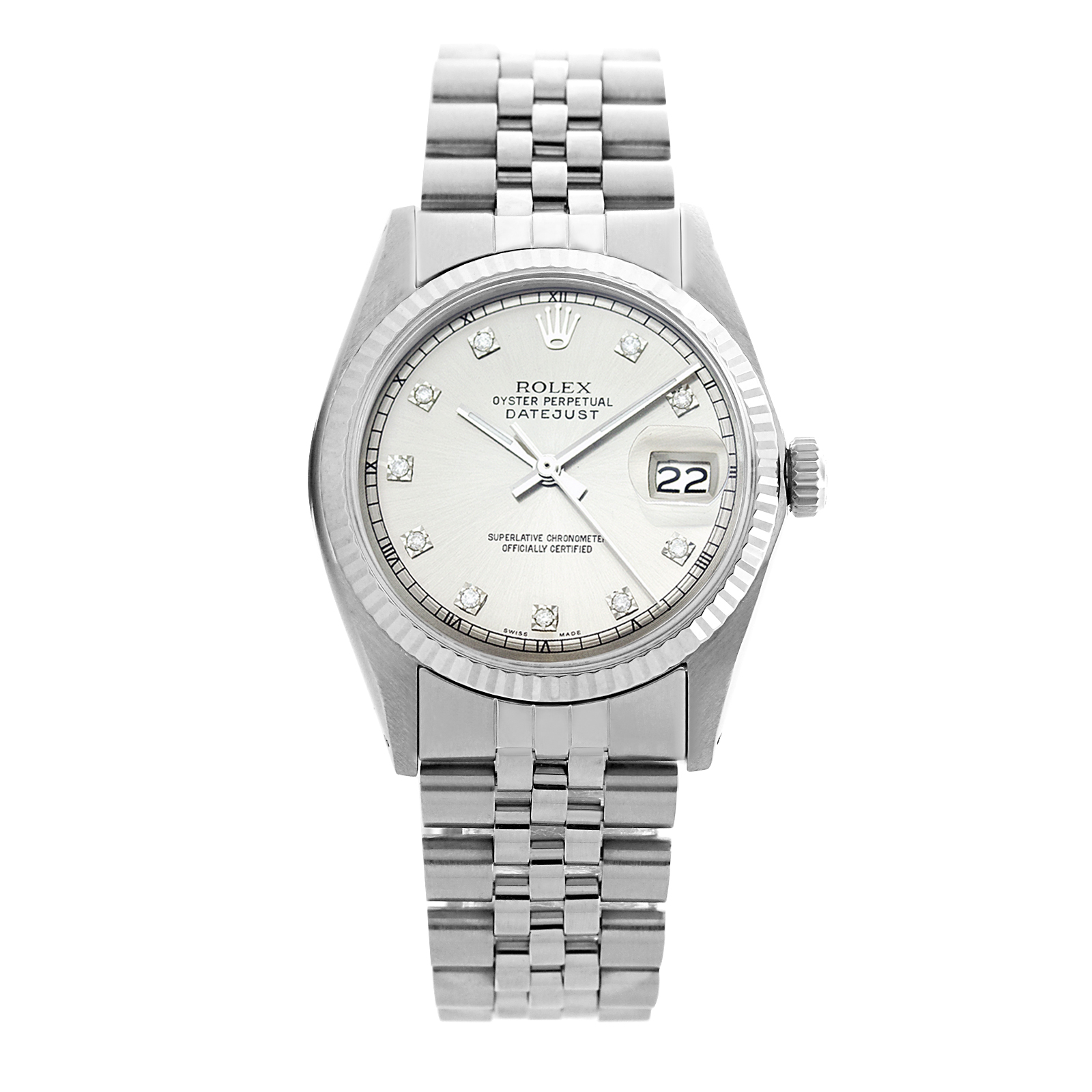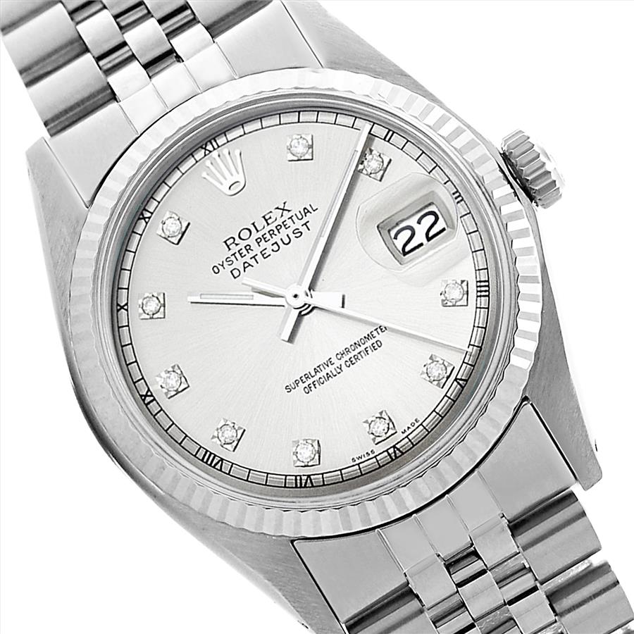 Authentic Rolex Mens Datejust 1601 Diamond Dial 18K White Gold Fluted Bezel 36mm Watch