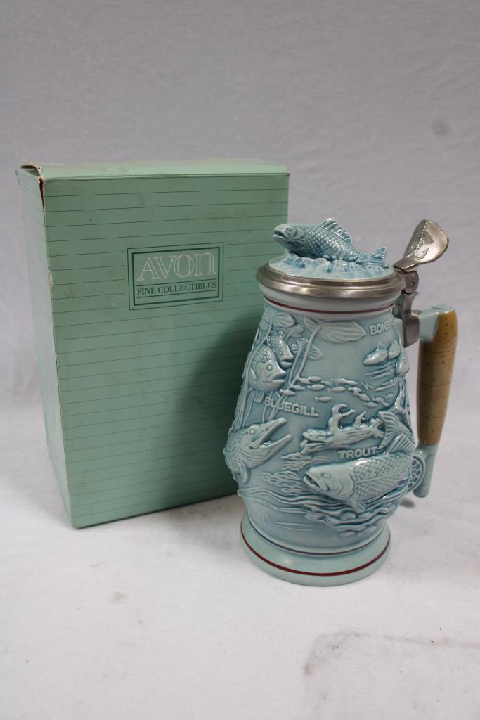 AVON Fishing Stein - Fine Ceramic Collectible Circa 1990.