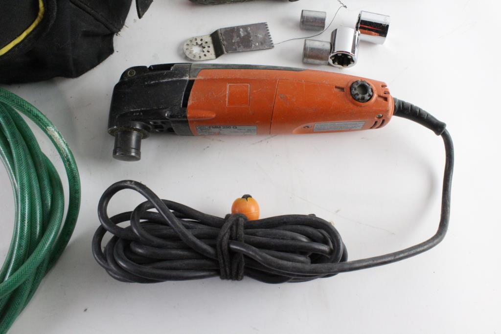 - Orange angle grinder