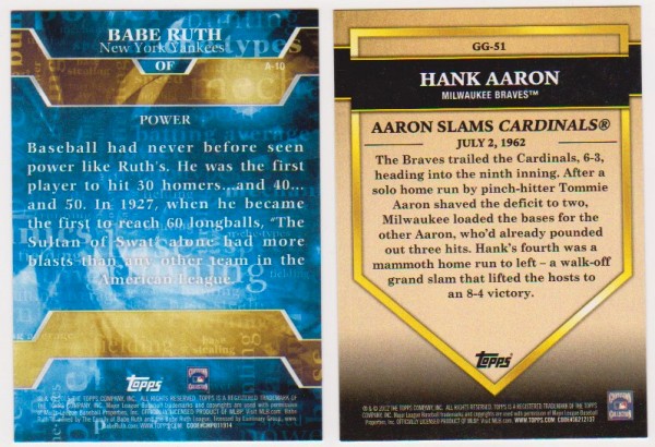Babe Ruth + Hank Aaron Baseball Card Pair
