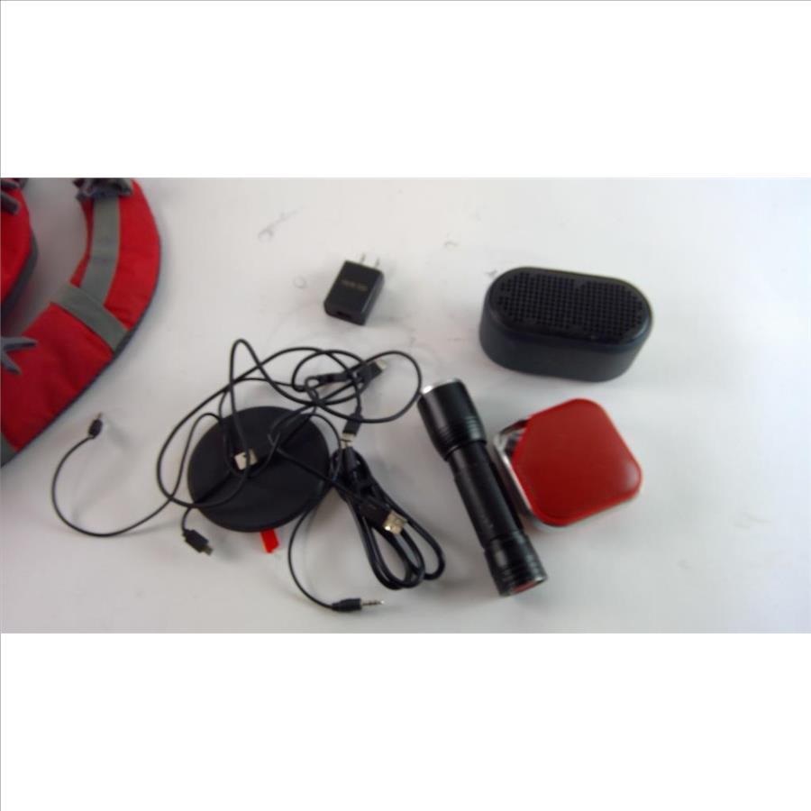 Backpack With Flashlight, Charging Pad, Bluetooth Speakers & More, 5 Pieces