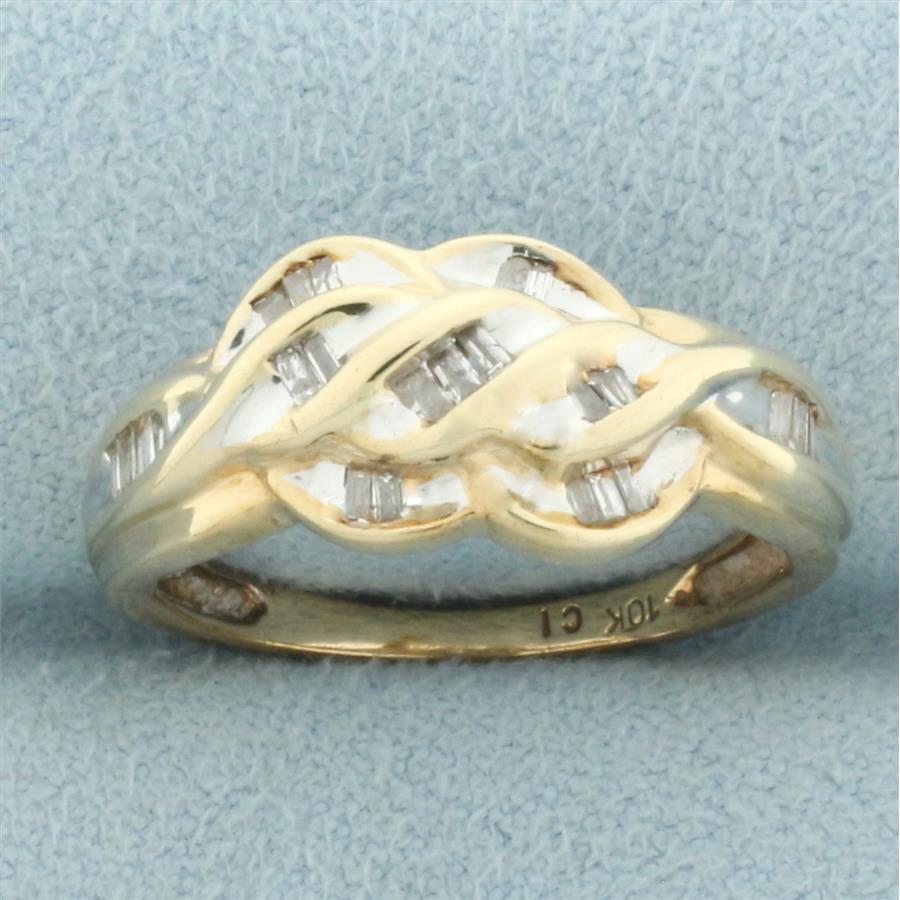 Baguette Diamond Knot Design Ring in 10k Yellow Gold