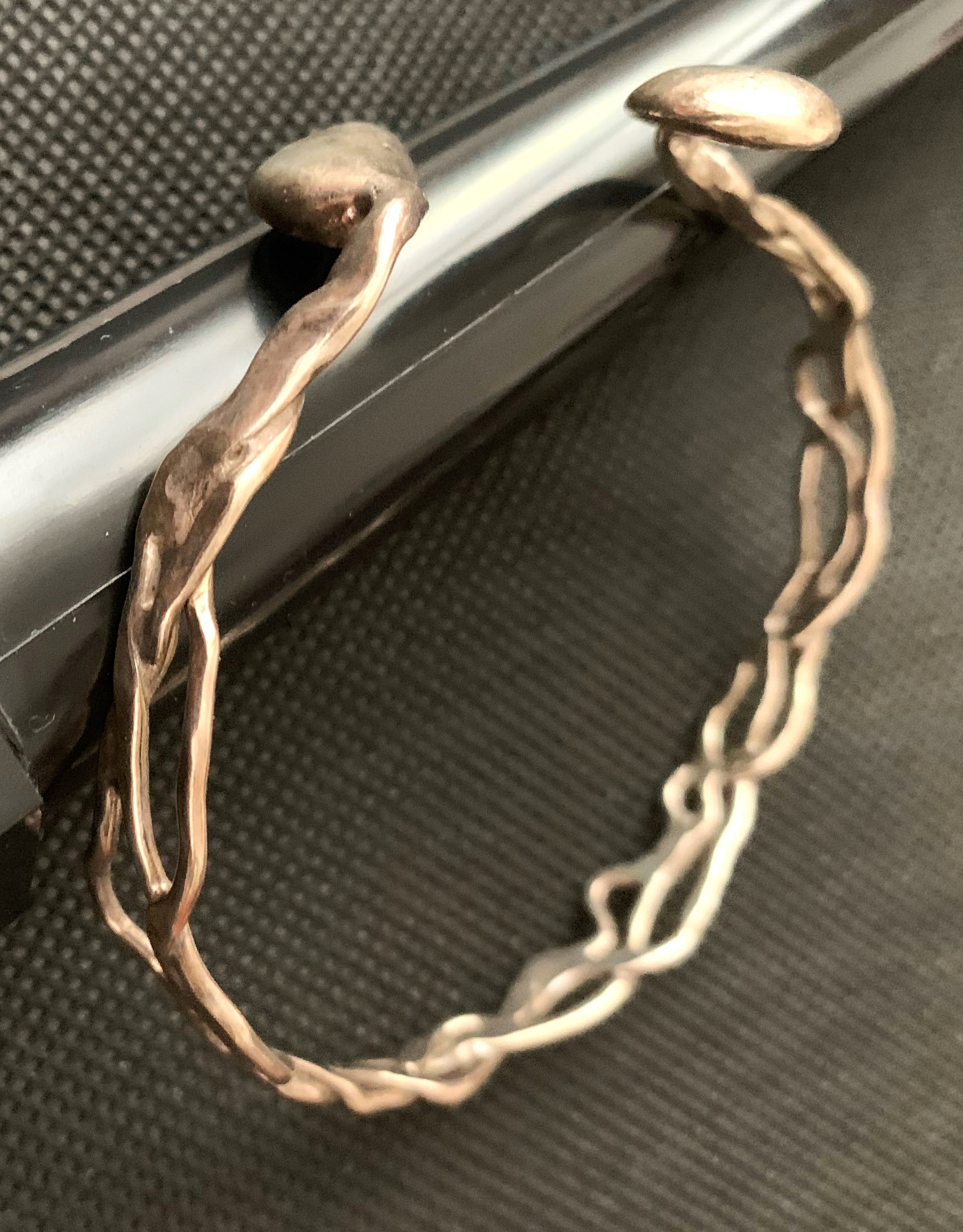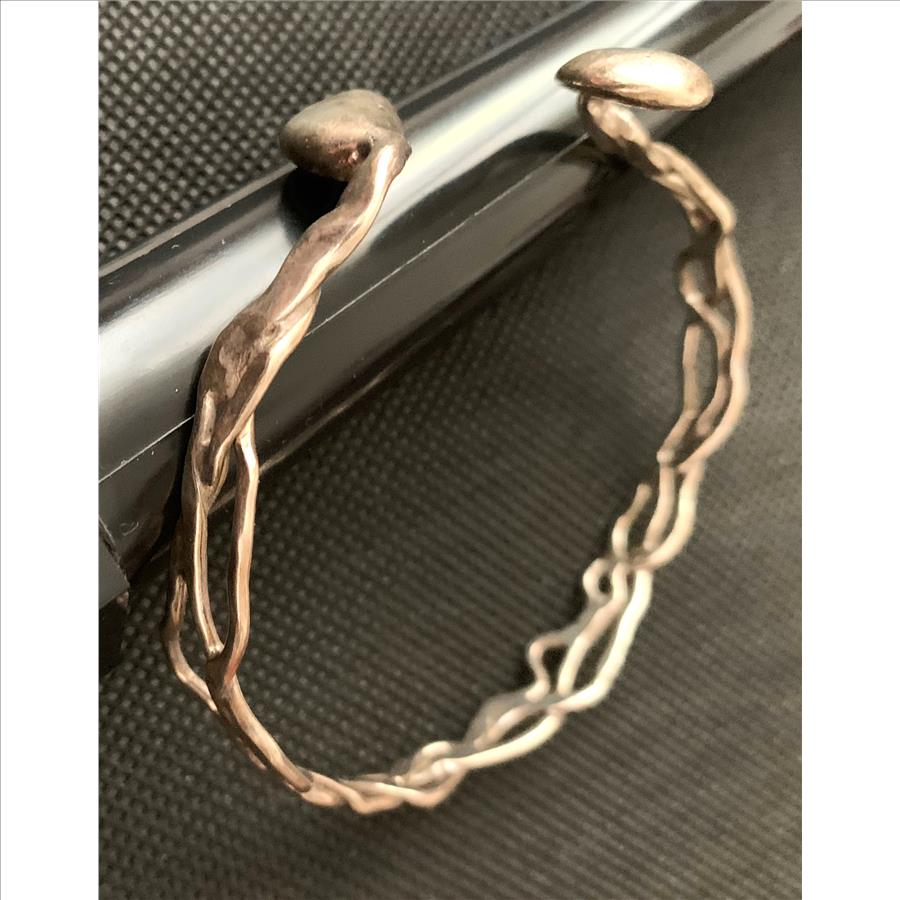 BANGLE BRACELET SOLID STERLING SILVER, GOLD TONNED, MOD LOOK