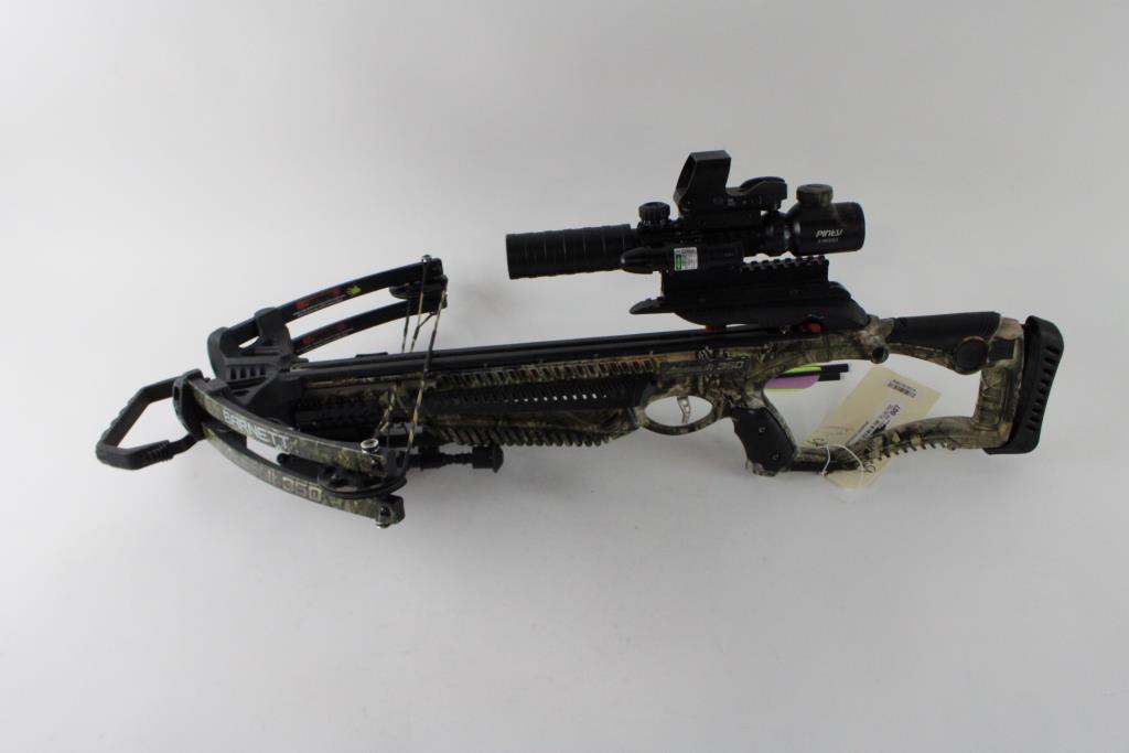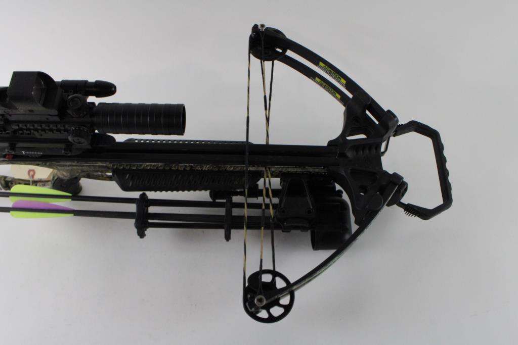 Get a great deal with this online auction presented by PropertyRoom.com on behalf of a law enforcement or public agency client. Model: Assault 350 Color: Camo Bow Length: 17.5" Draw Length: N/A Draw Weight: N/A Draw: N/A Accessories: Quiver, Bolts Cosmetic Condition: Good, with scratches, scuffs, and wear Shipment by PropertyRoom to any jurisdiction does not mean this item is legal in such jurisdiction. It is your responsibility to have knowledge of, obey, or comply with all applicable laws relating to this item.