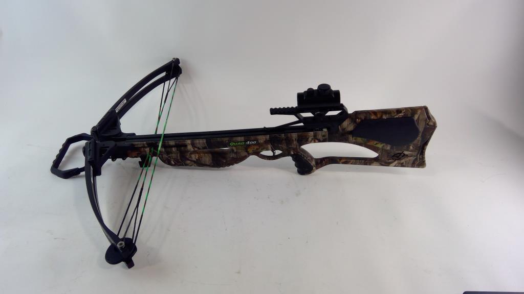 Get a great deal with this online auction presented by PropertyRoom.com on behalf of a law enforcement or public agency client. Model: Quad 400 Color: Camo Accessories: Scope Cosmetic Condition: Good with scratches Untested Shipment by PropertyRoom to any jurisdiction does not mean this item is legal in such jurisdiction. It is your responsibility to have knowledge of, obey, or comply with all applicable laws relating to this item.