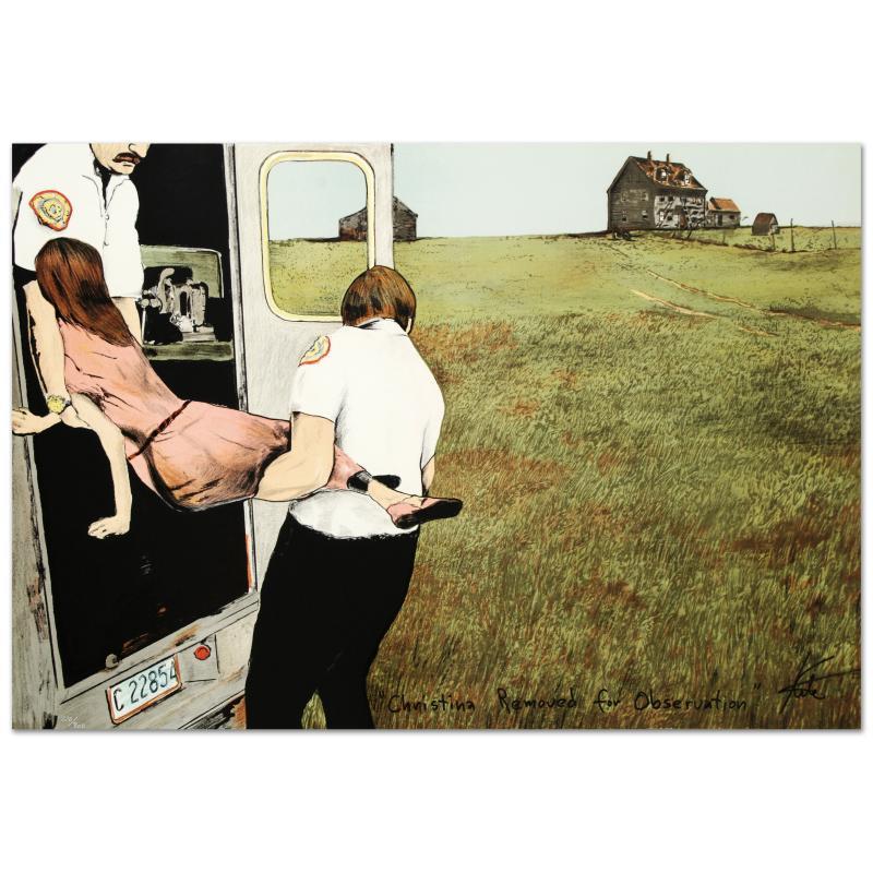 "Christina Removed for Observation" is a limited edition lithograph on museum quality deckle-edge paper, numbered and hand signed by Barry Kite. Includes Certificate of Authenticity! Measures approx. 29" x 20" (image).