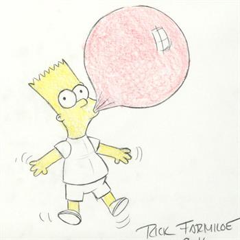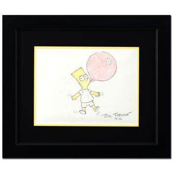 "Bart Simpson" is an original sketch on paper by acclaimed veteran animator Rick Farmiloe. Featuring The Simpsons imagery, this piece is hand-signed by the artist and comes framed. Includes Certificate of Authenticity! Measures approx. 19" x 16" (frame), 11" x 8.5" (sheet).