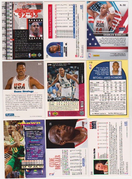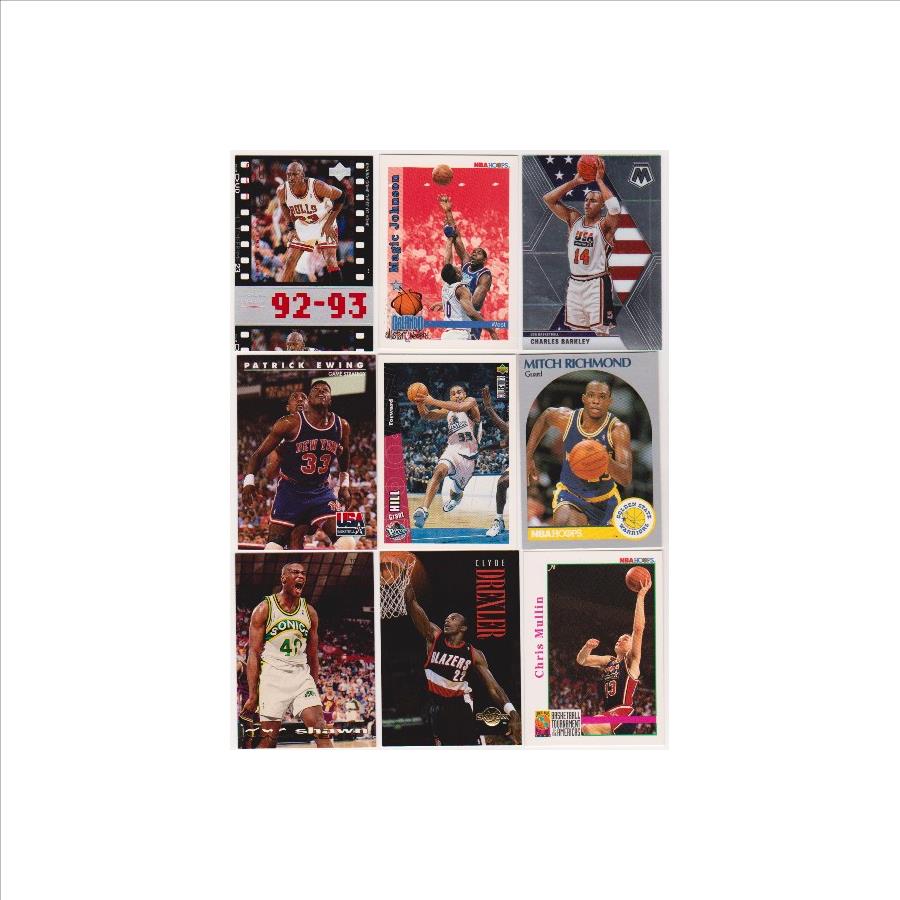 This is a collection of 9 different basketball cards of star and Hall of Fame players.  This lot includes Michael Jordan, Magic Johnson, Charles Barkley, Patrick Ewing, Grant Hill, Chris Mullin, Clyde Drexler, Shawn Kemp, and Mitch Richmond.  These are mostly in the EX-MT to Near Mint condition range.  This is a nice lot featuring a nice mix of stars.