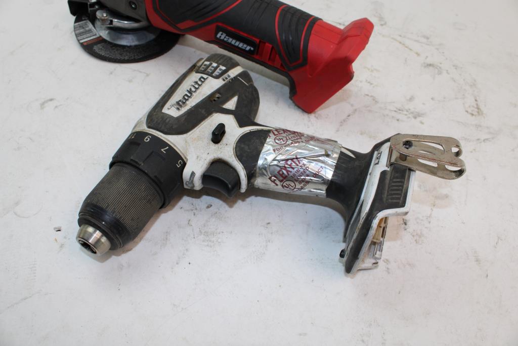 Get a great deal with this online auction presented by PropertyRoom.com on behalf of a law enforcement or public agency client. - Bauer angle grinder (1761c-b) & makita drill (lxfd01)