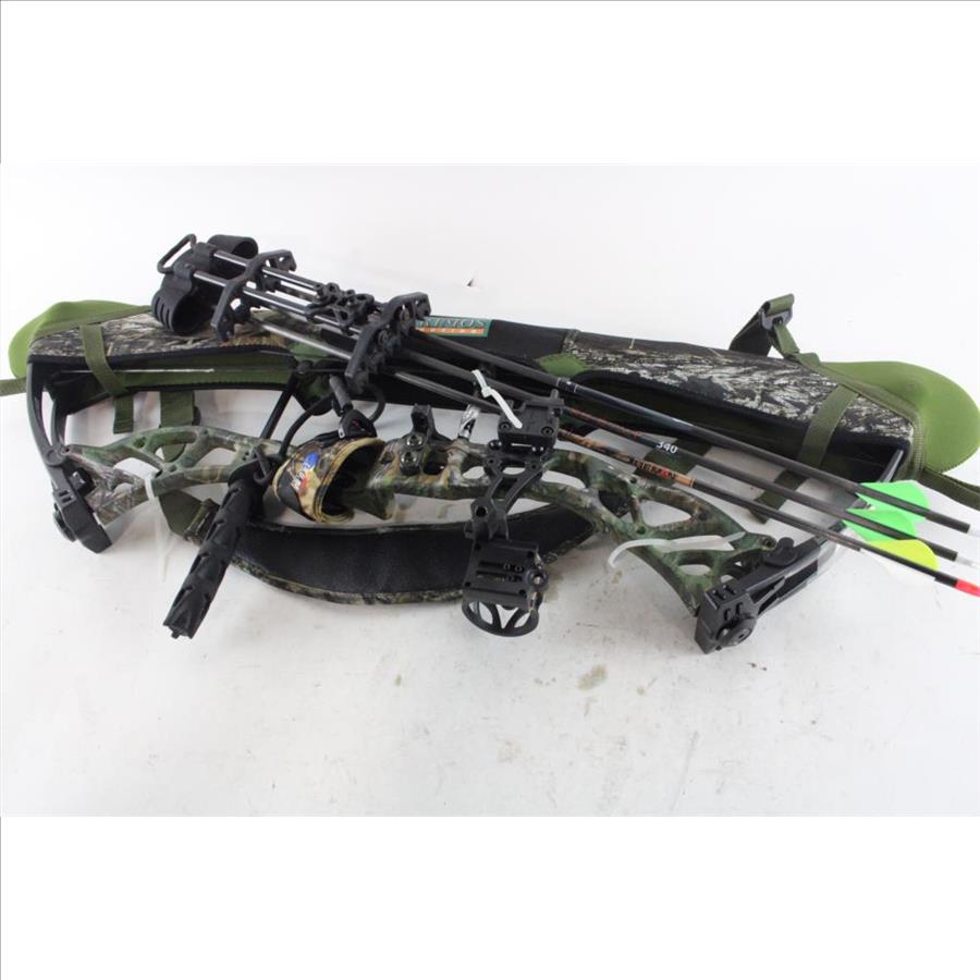 Get a great deal with this online auction presented by PropertyRoom.com on behalf of a law enforcement or public agency client. Model: Wild Color: Camo Bow Length: 38" Draw Length: 29" Draw Weight: 70 Draw: Right Hand Accessories: Primos Hunting Cover Cosmetic Condition: Good with scratches Shipment by PropertyRoom to any jurisdiction does not mean this item is legal in such jurisdiction. It is your responsibility to have knowledge of, obey, or comply with all applicable laws relating to this item.