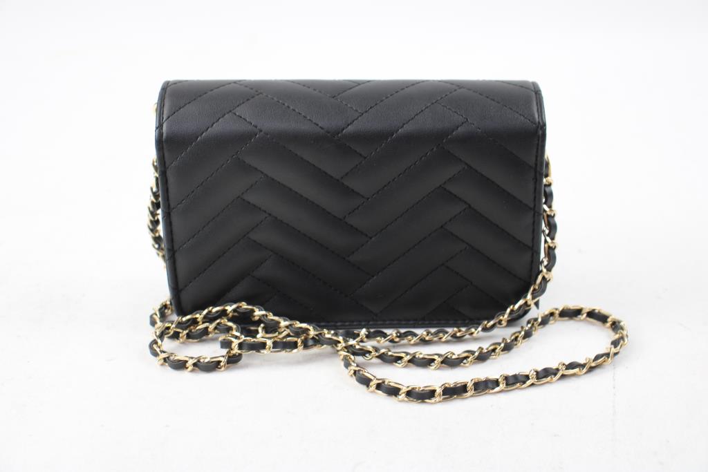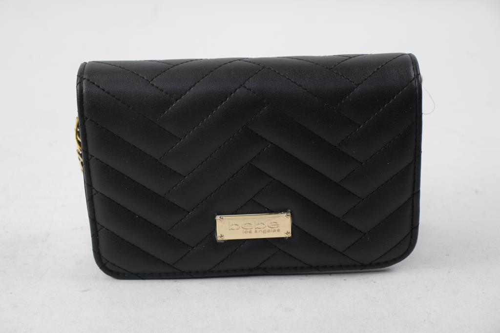 Bebe Black Crossbody Handbag With Black/Gold Chain, And Gold Duck Statues