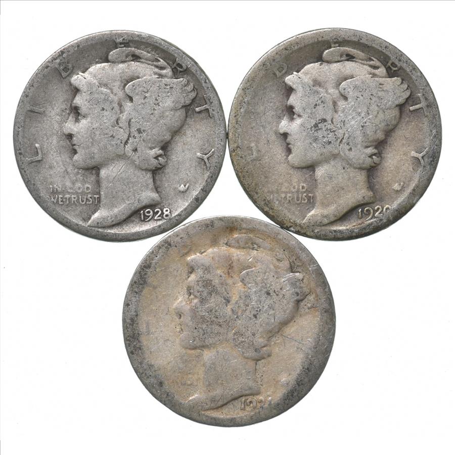 Better 1928-S 1920-S 1921 Mercury Silver Dime Early Dates