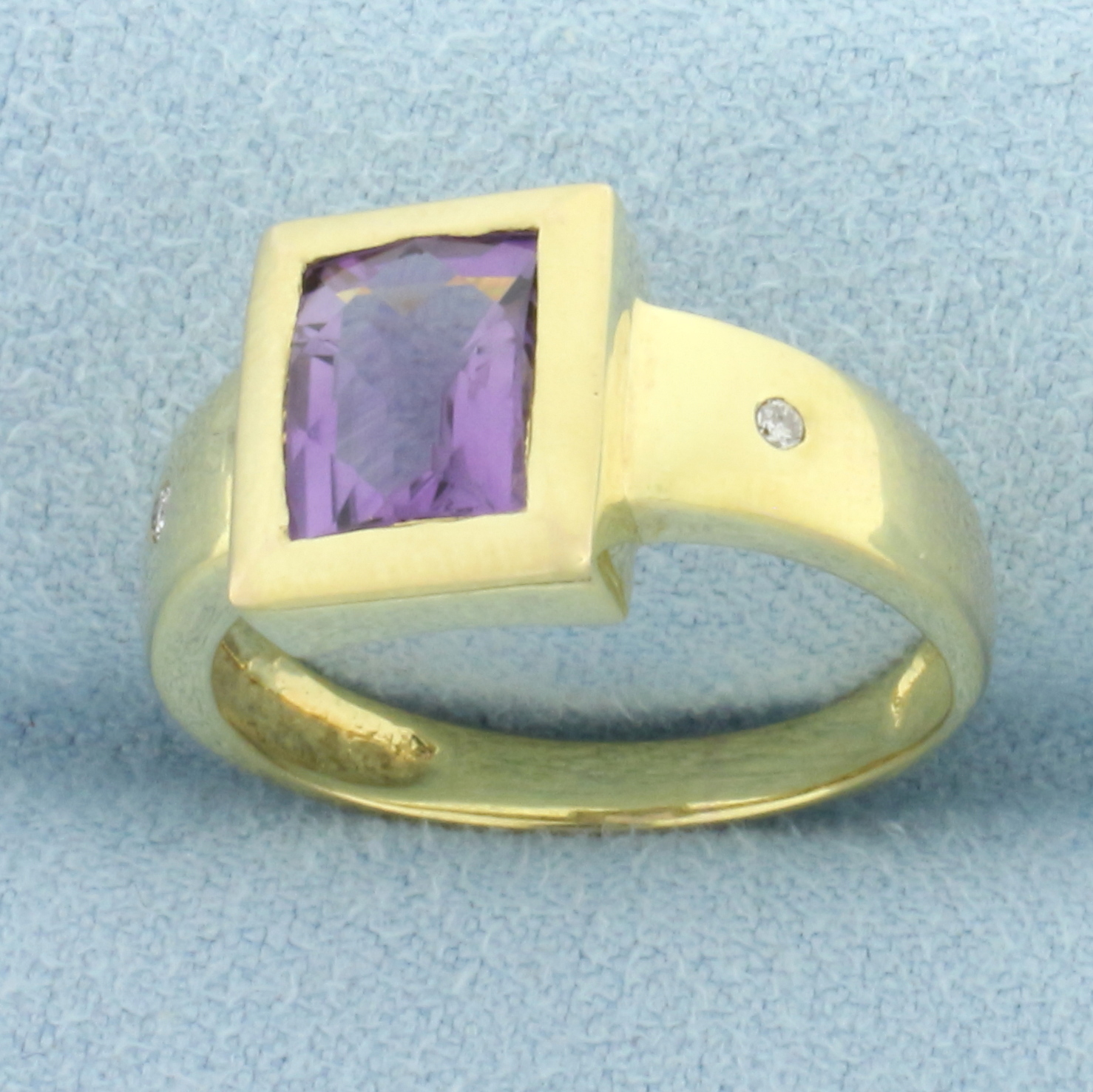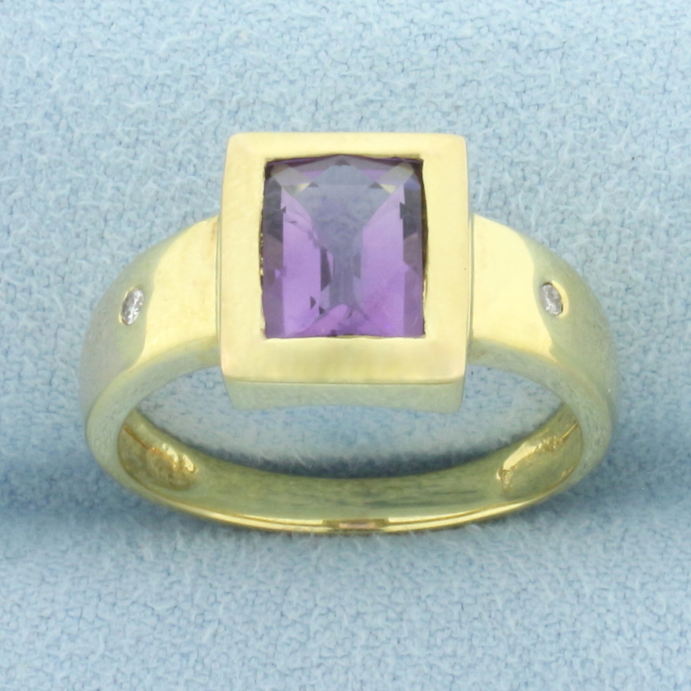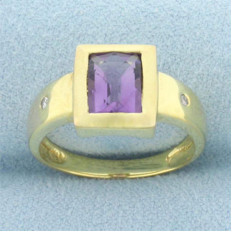 Bezel Set Amethyst and Diamond Ring in 14k Yellow Gold