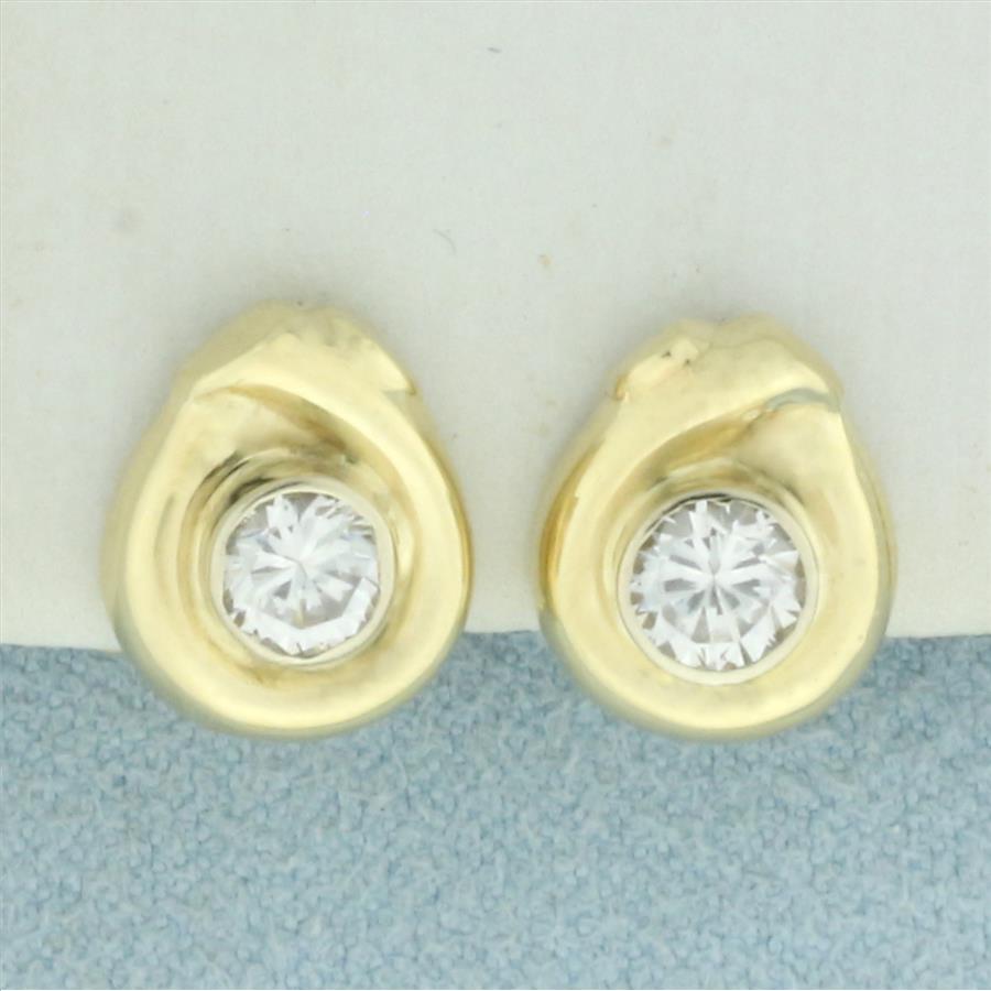 Bezel Set CZ Earrings in 18k Yellow Gold