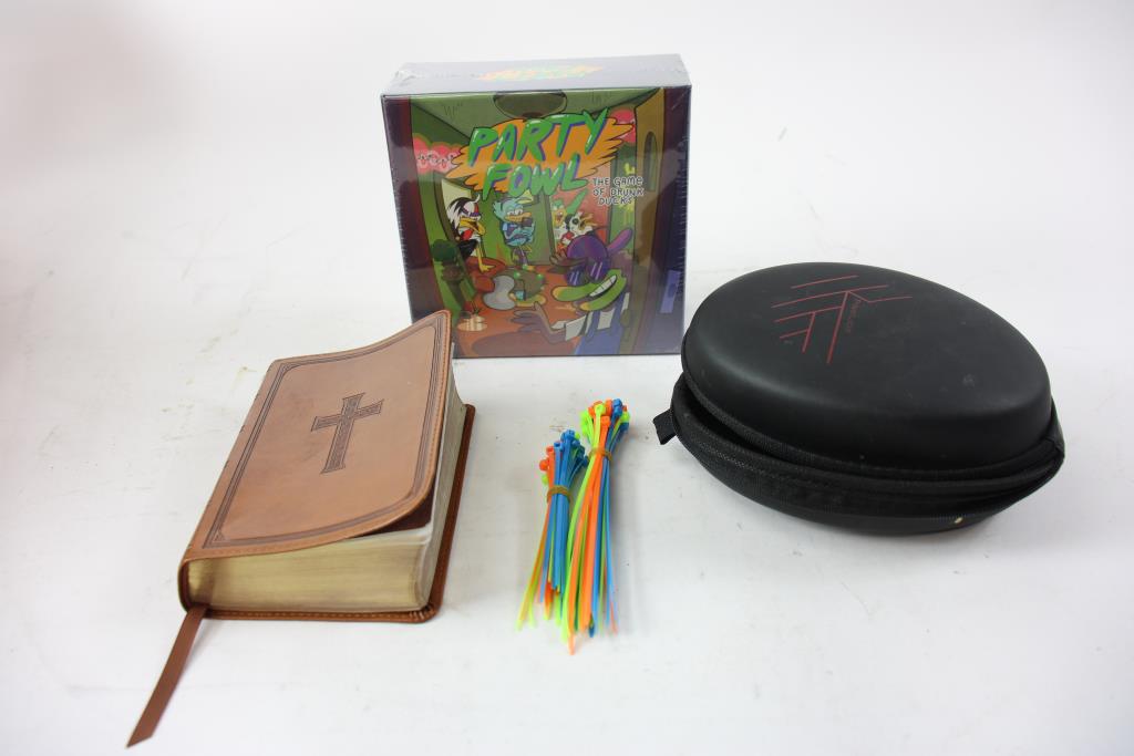 Get a great deal with this online auction presented by PropertyRoom.com on behalf of a law enforcement or public agency client. - Items: Party Fowl, Bible, Headphone Case, Tape Measure. Bit Kits, Sunglasses, Tool Blades, Air Freshener, Toe Warmer