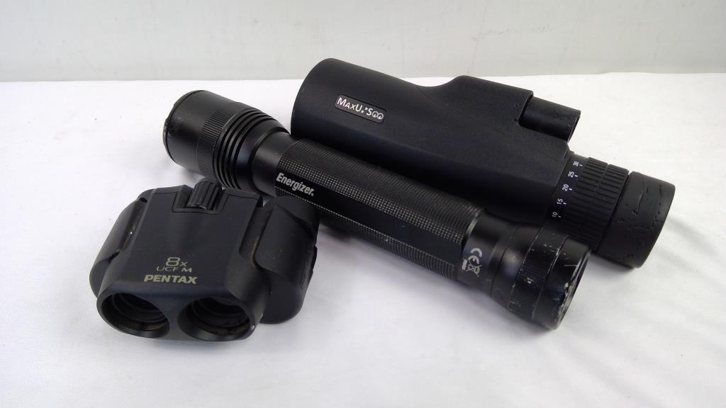 Black Duffle Bag W/Misc Tools, Flashlight, Binoculars, Cutters