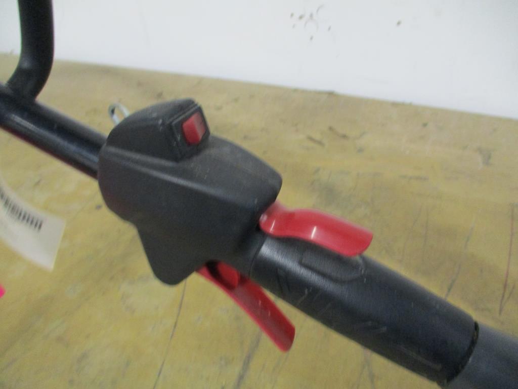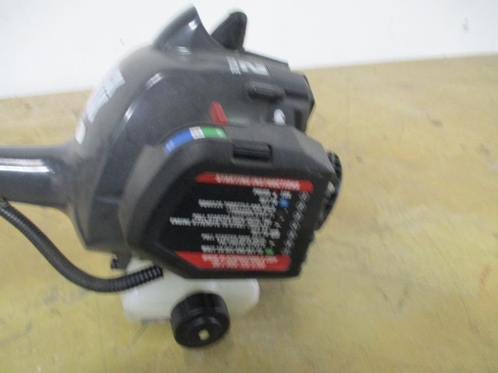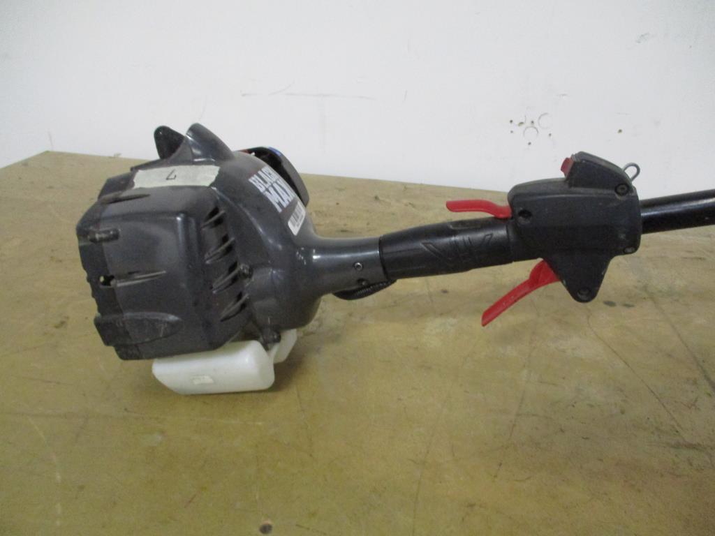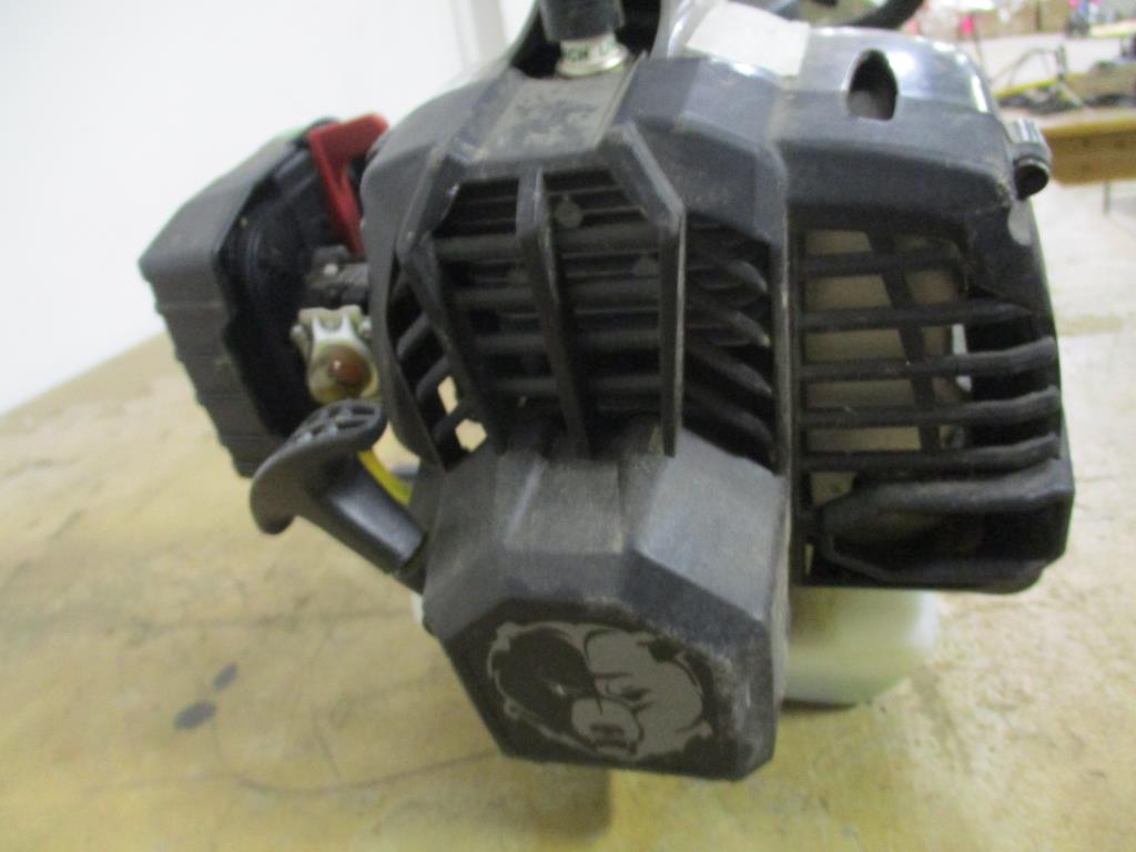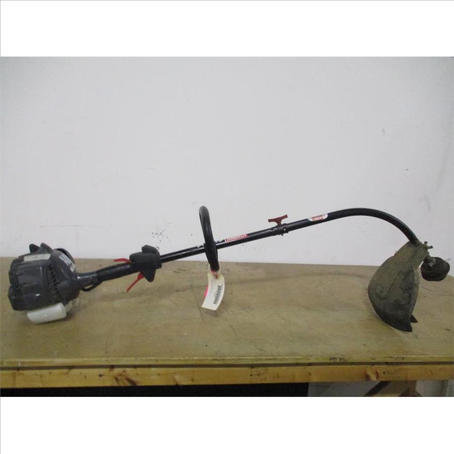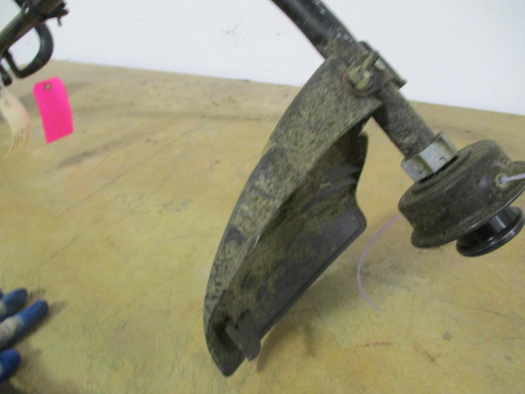 - Item info: gas powered, pull cord start, 2 cycle engine, curved bar, handle for stability, trigger throttle on handle, kill switch, line guard