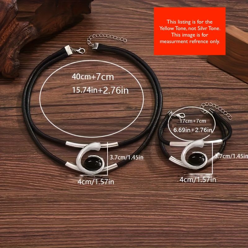 Black Onyx Necklace & Bracelet Ring Set 18K Gold Overlay