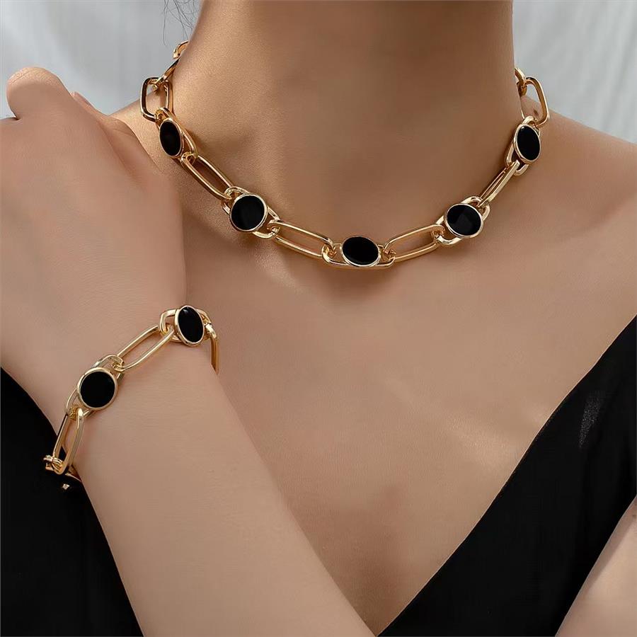 Black Onyx Necklace & Bracelet Set 18K Gold Overlay