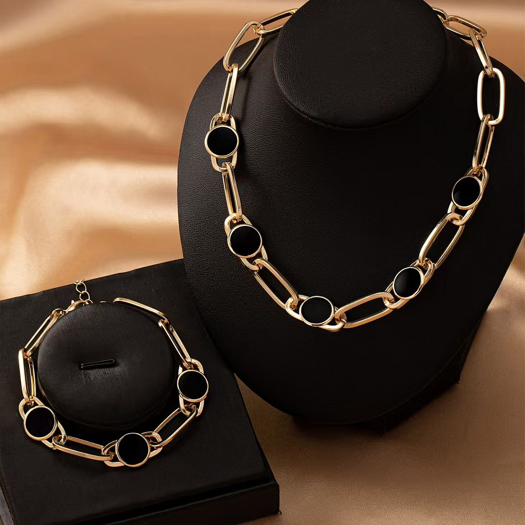 Black Onyx Necklace & Bracelet Set 18K Gold Overlay