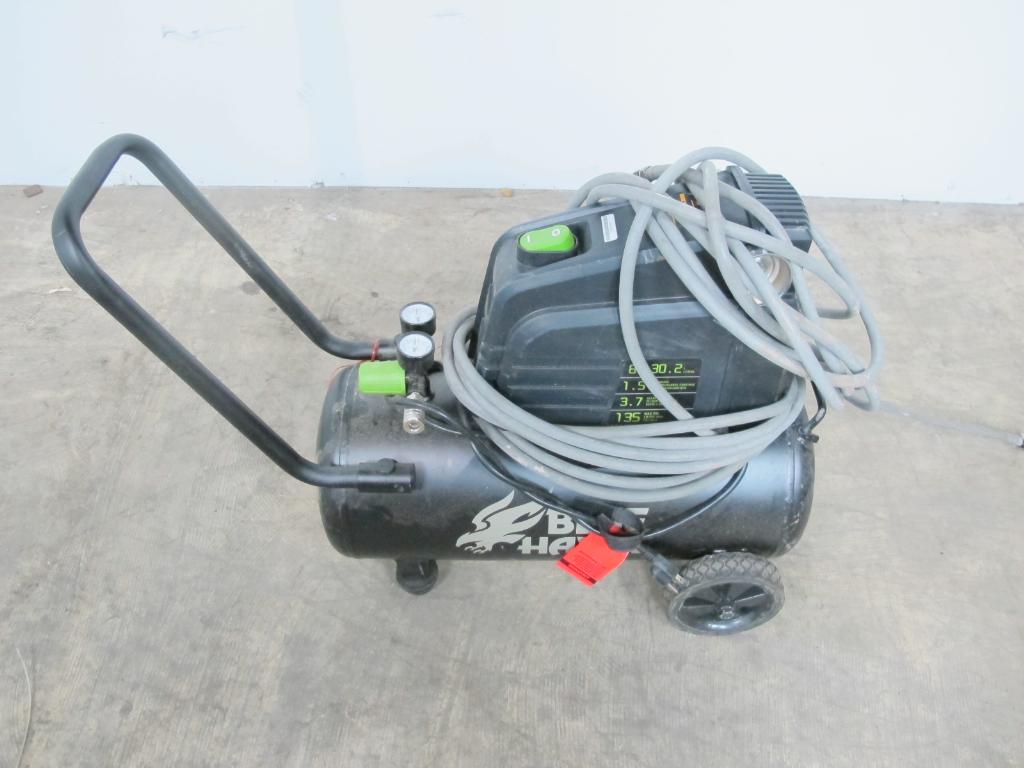 Items at our Orlando, FL warehouse are available for pick up BY APPOINTMENT ONLY. The winning bidder must contact customersupport@propertyroom.com to schedule a pick up appointment. Get a great deal with this online auction for a Blue Hawk Air Compressor presented by Property Room on behalf of a law enforcement or public agency client. Model: Unknwon 8 Gallon 1.5 HP 135 Max PSI