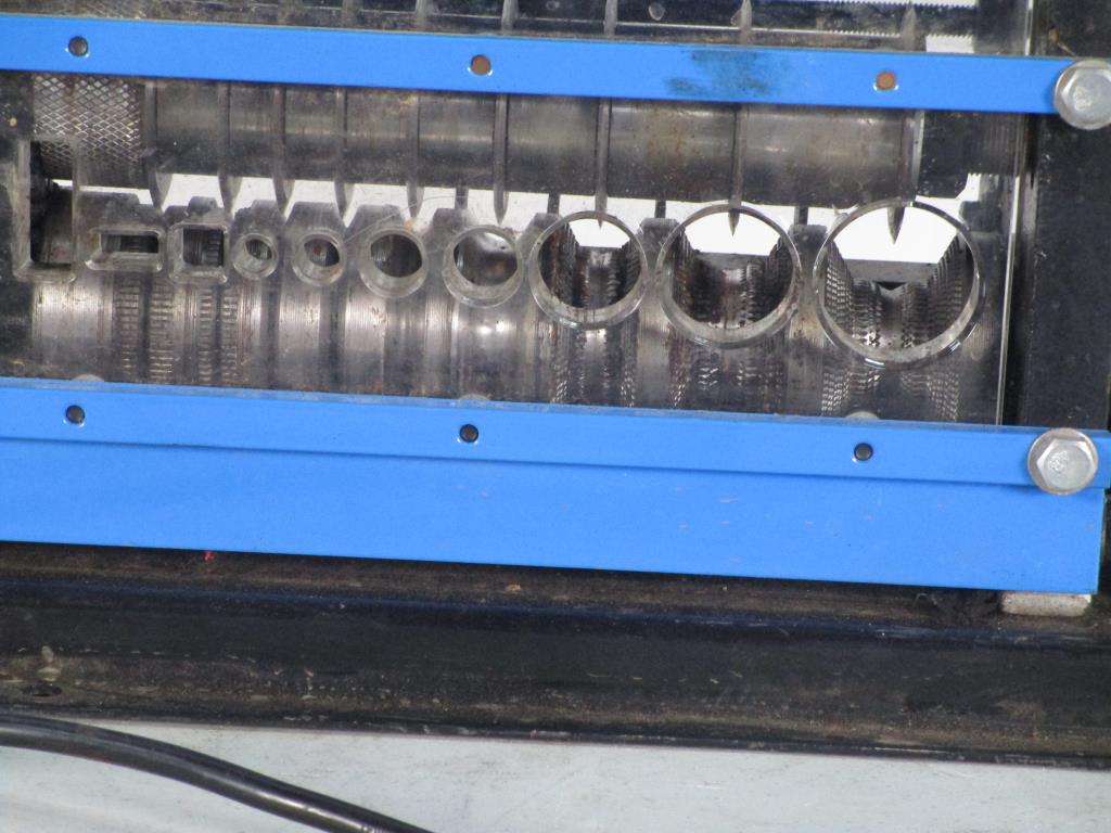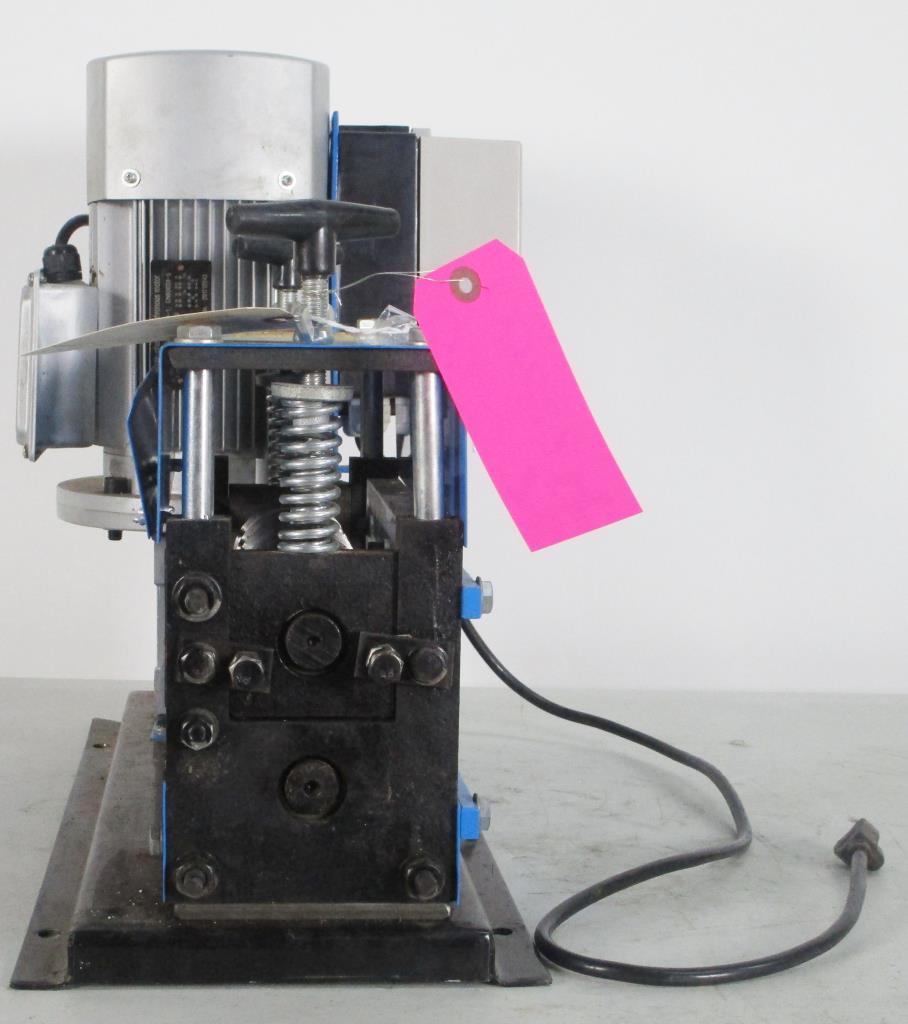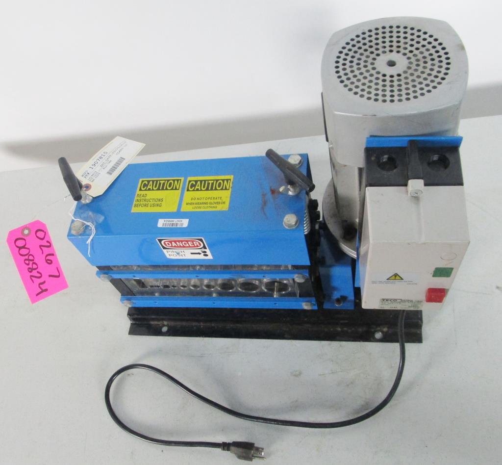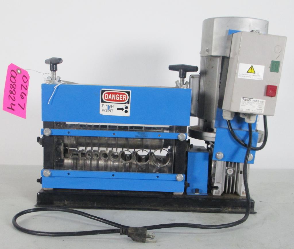 - 120V, 60Hz, 0.75Kw, 1HP, single phase,wire range: 18 AWG - 1" outside diameter, 2mm-25mm, 9 channels of cutters, 9 cutting blades, single assembly of cutter and roller, cuts top of wires, cutting speed: approx. 75ft per minute, strips both copper and aluminum, solid and stranded, single and multi-conductor wires
