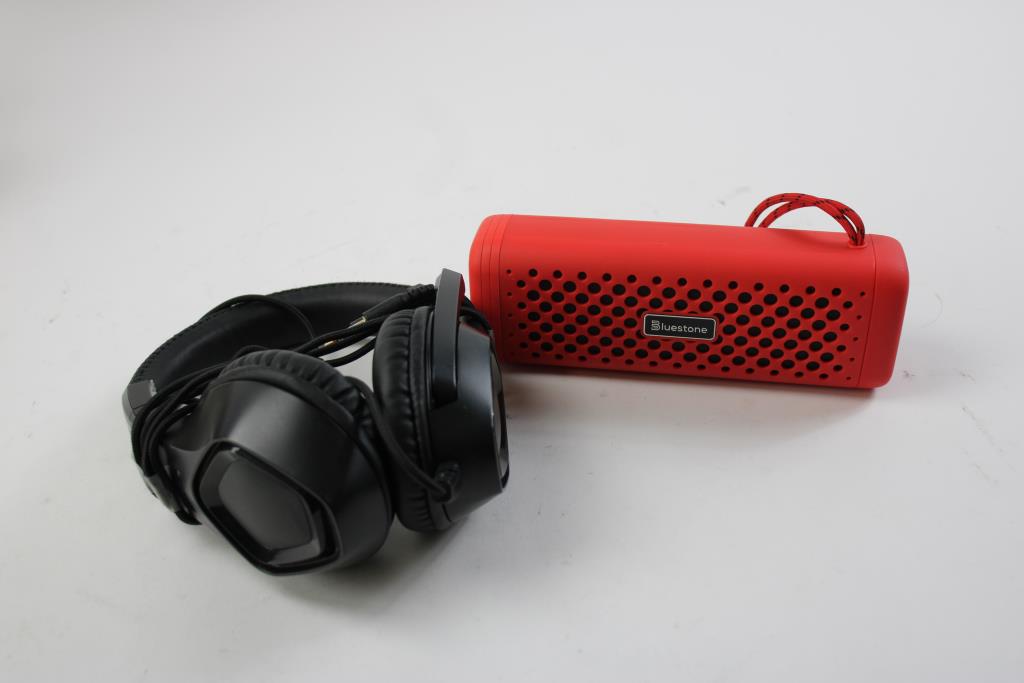 Bluestone Bluetooth Speaker, Guess Leather Wallet, Headphones, And Adidas Drawstring Bag, 4 Pieces